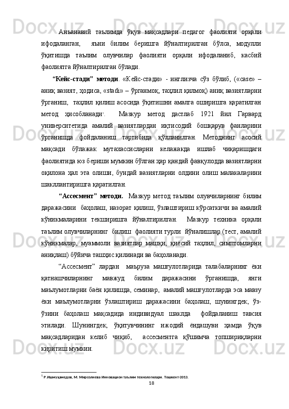 | 2.4. | Фан юзасидан кейслар тўплами, тестлар, назорат топшириқлари ва мустақил таълим юзасидан кўрсатмалар, амалий топшириқлар, ишланмалар............. |