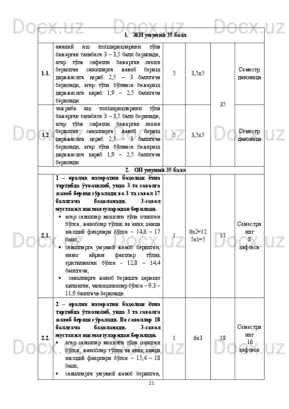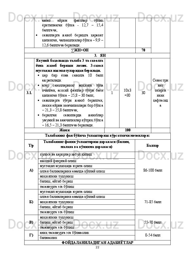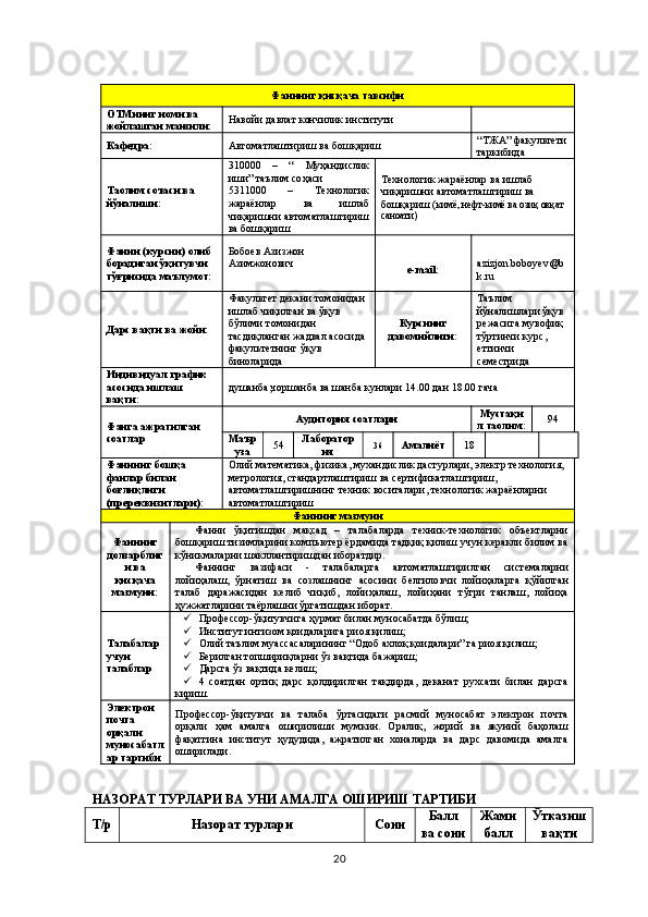 | 2.1 | Ўқув фани дастурининг қисқача тавсифи (SYLLABUS) | 21 |