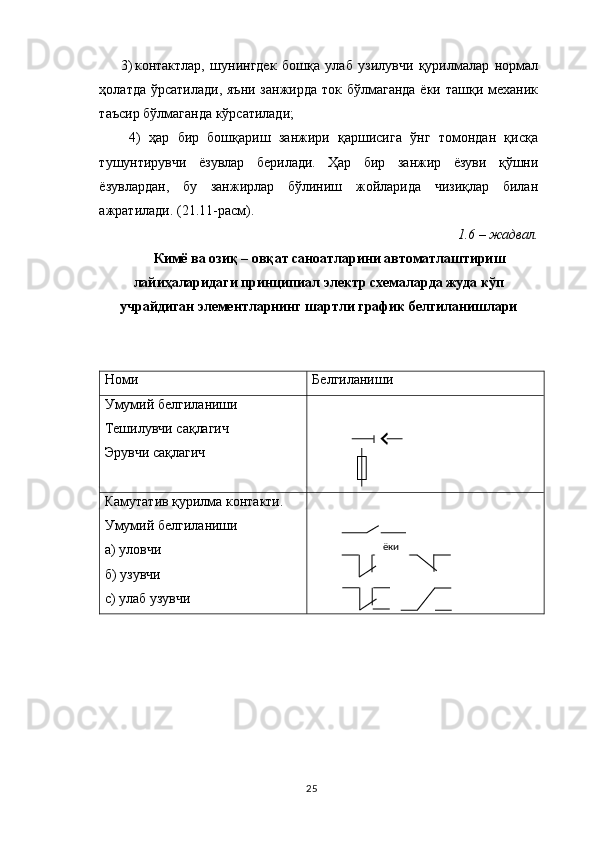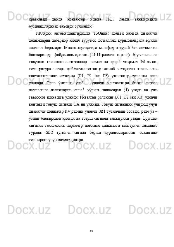 | II-БОБ | “АВТОМАТЛАШТИРИШ СИСТЕМАЛАРИНИ ЛОЙИҲАЛАШ, ЎРНАТИШ ВА СОЗЛАШ”ФАНИ “АВТОМАТЛАШТИРИШНИНГ ПРИНЦИПИАЛ СХЕМАЛАРИНИ ЛОЙИҲАЛАШ” МАВЗУСИНИ ЎҚИТИШНИНГ ИННОВАЦИОН ТАЪЛИМ АСОСИДАГИ ИШЛАНМАСИ.......................................... |