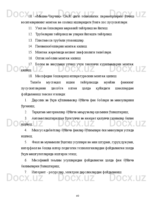 | 1.2. | “Автоматлаштириш системаларини лойиҳалаш, ўрнатиш ва созлаш” фанини ўқитишда инновациялар ва илғор хорижий тажрибалар............................................................... |