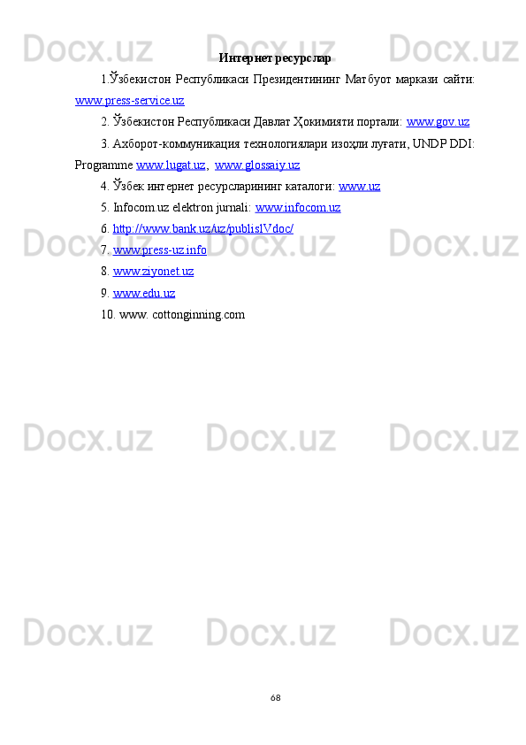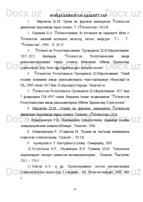 | ФОЙДАЛАНИЛГАН АДАБИЁТЛАР............................... | 69 |