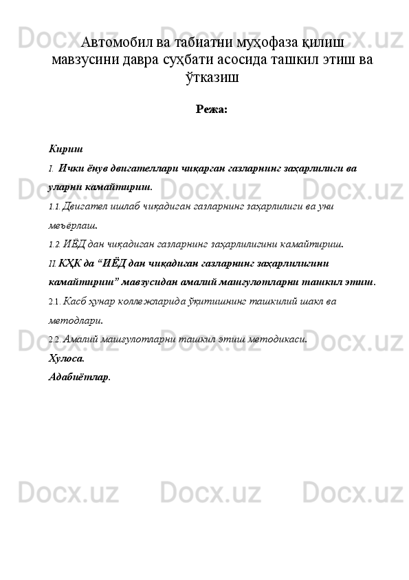 Автомобил ва табиатни муҳофаза қилиш мавзусини давра суҳбати асосида ташкил этиш ва ўтказиш