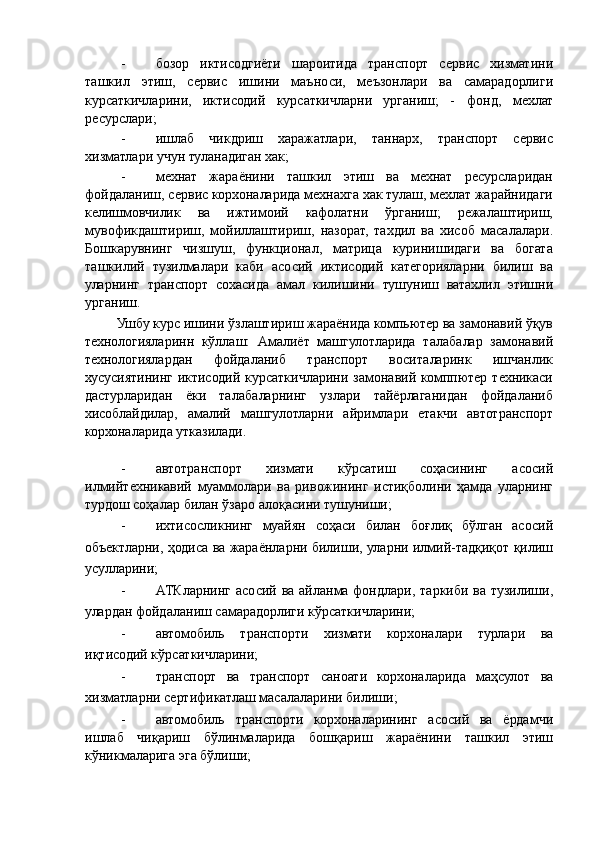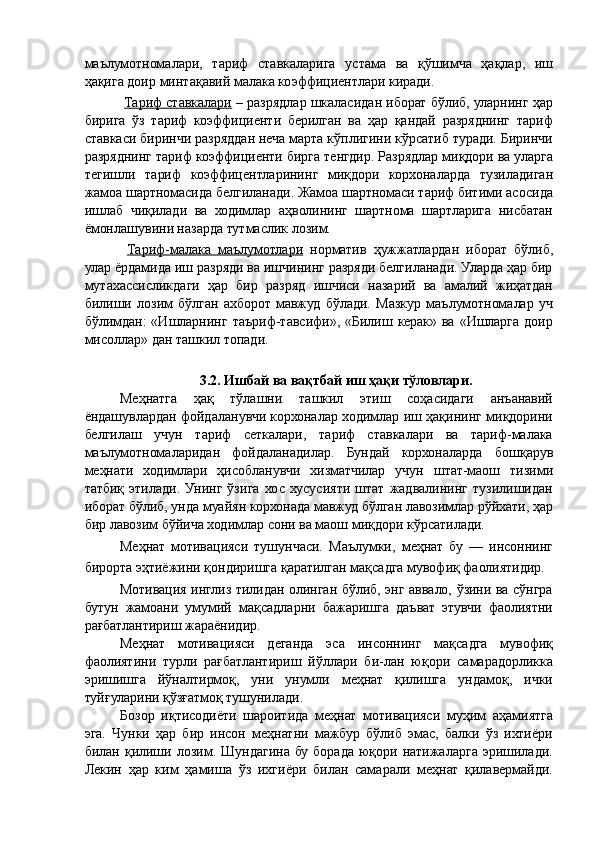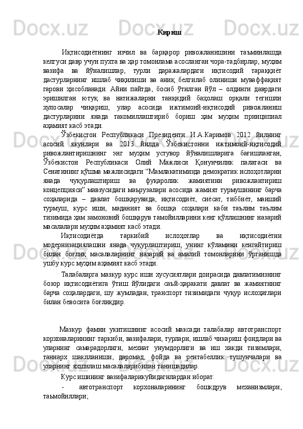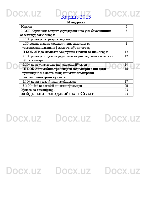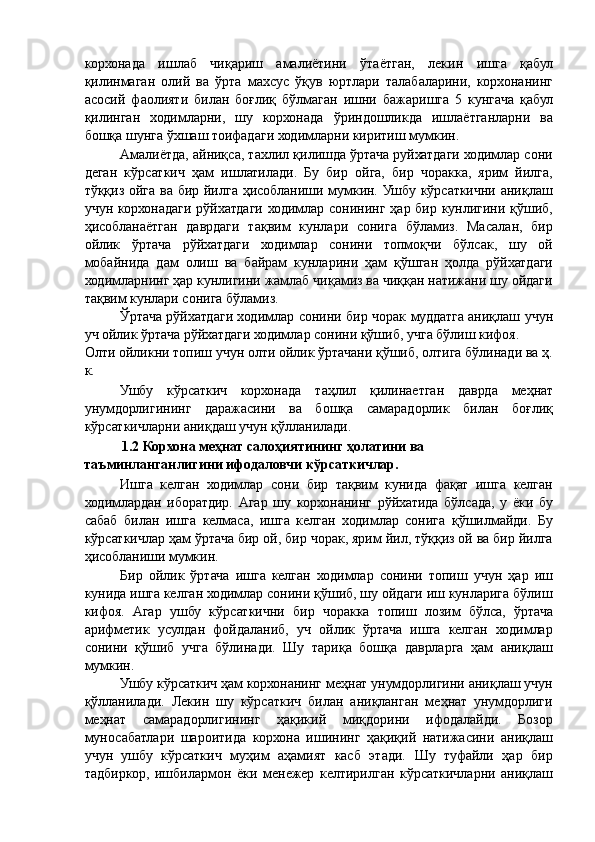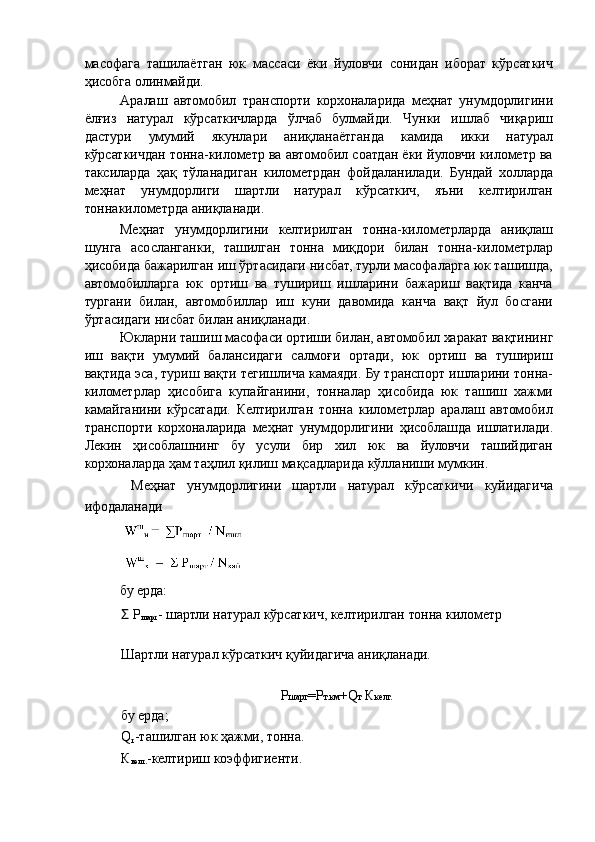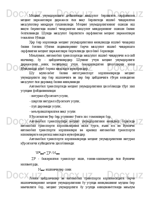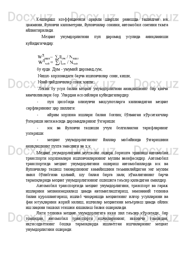 Автотранспорт корхоналарида меҳнат унумдорлиги ва иш ҳақи