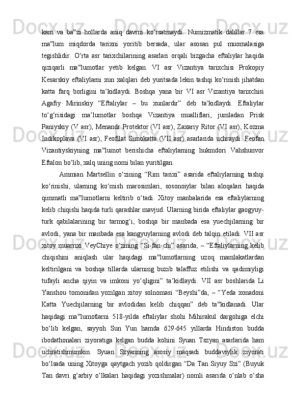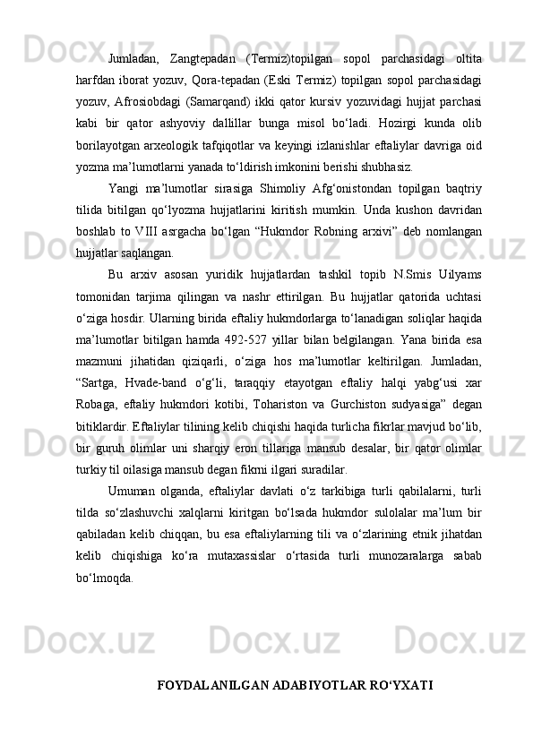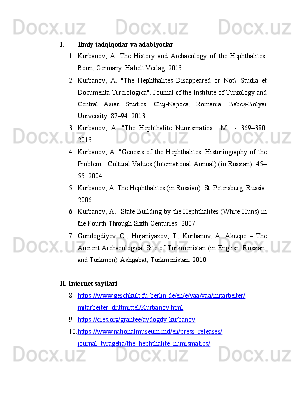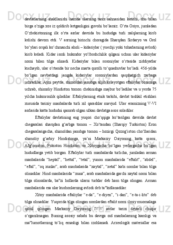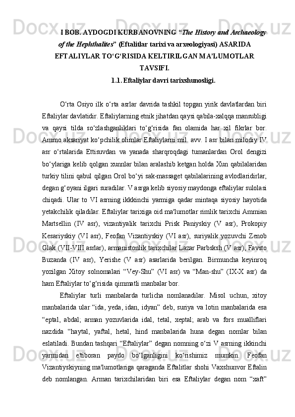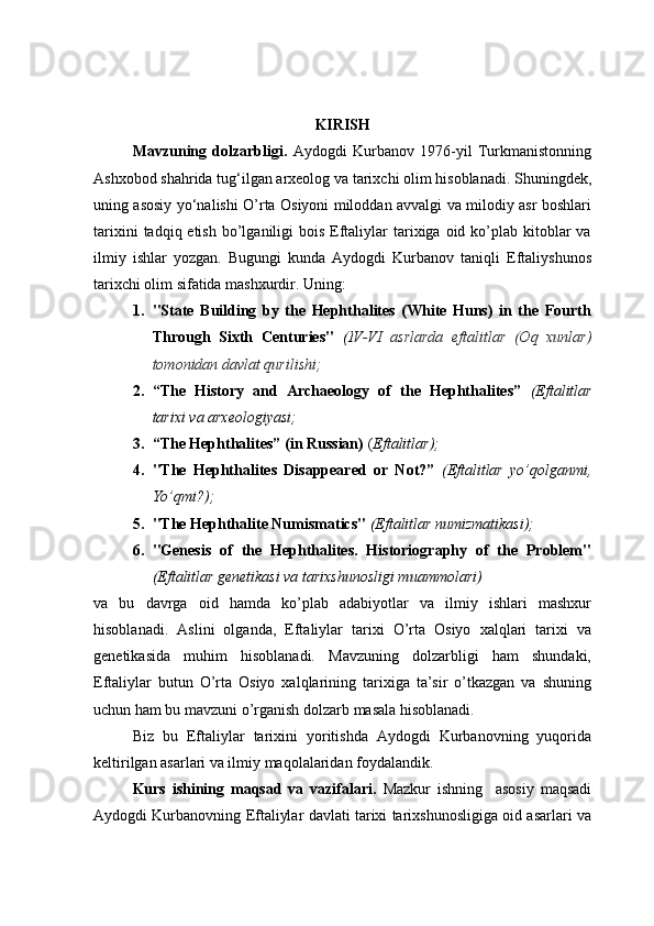 AYDOGDI KURBANOVNING ASARLARIDA EFTALIYLAR DAVLATI TARIXINING O‘RGANILISHI