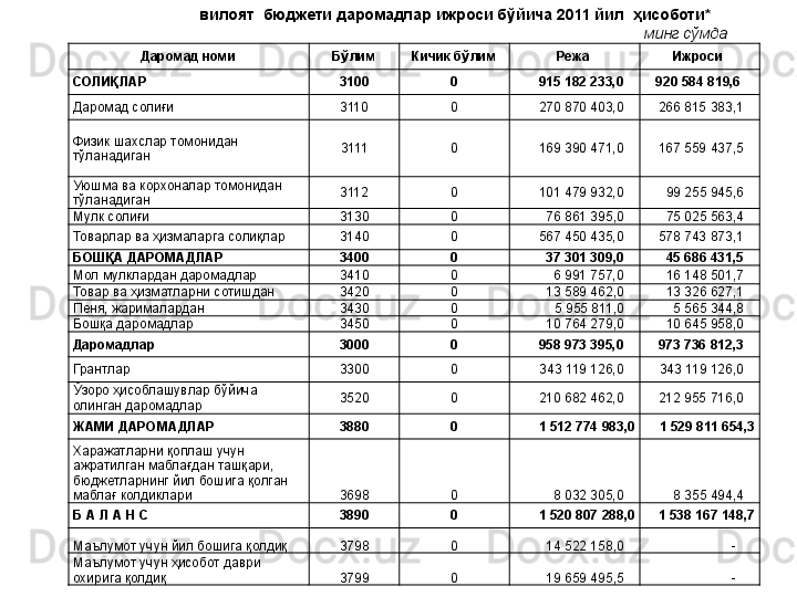 Ғазна ижроси шароитида Давлат бюджети даромадлари ҳисоби