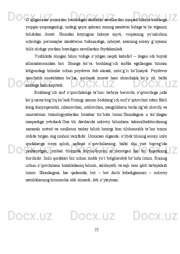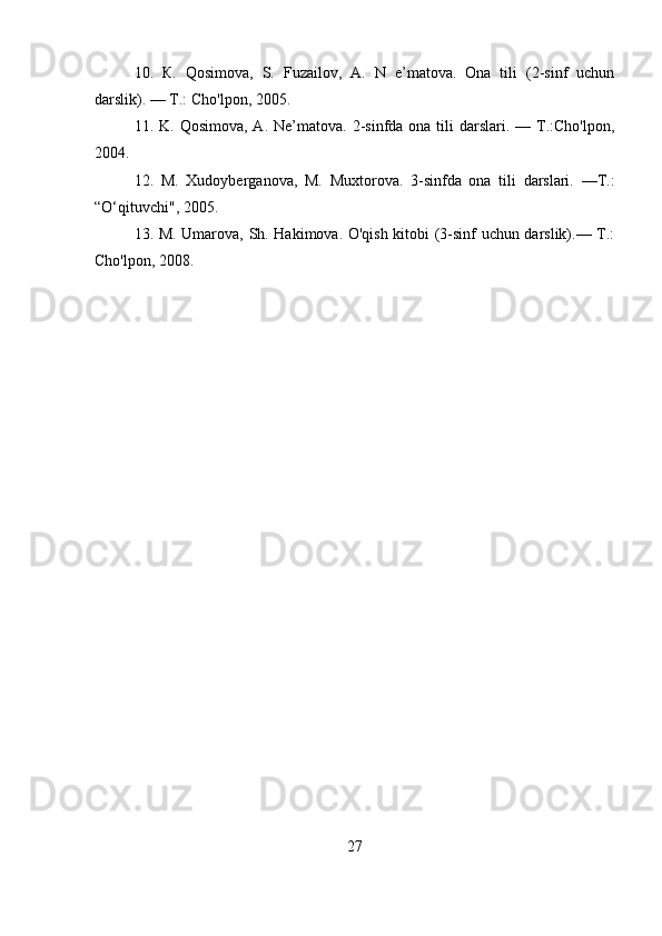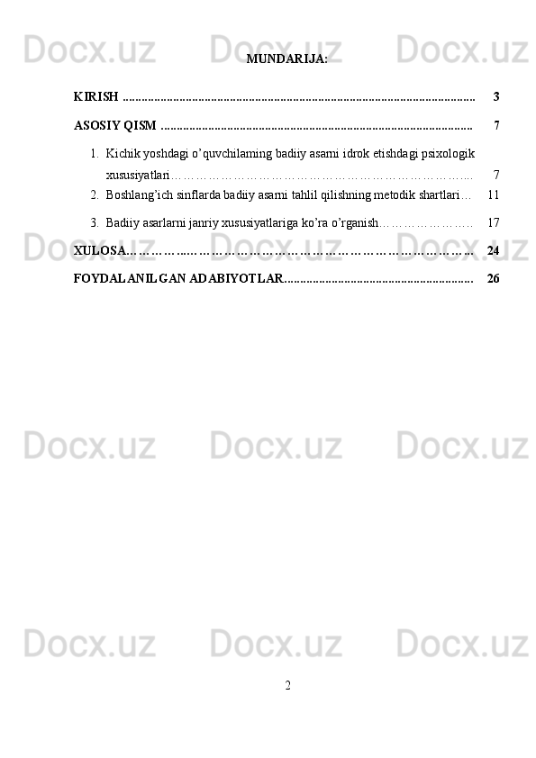 | FOYDALANILGAN ADABIYOTLAR............................................................ | 26 |