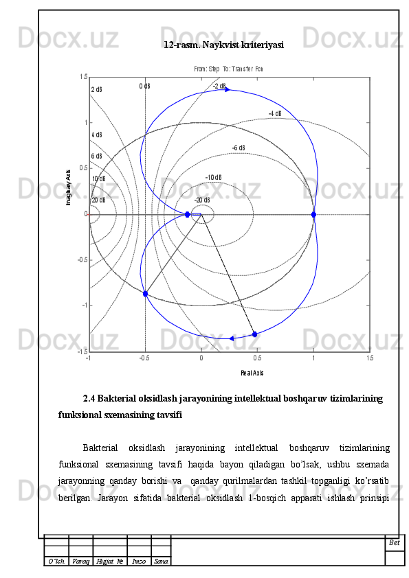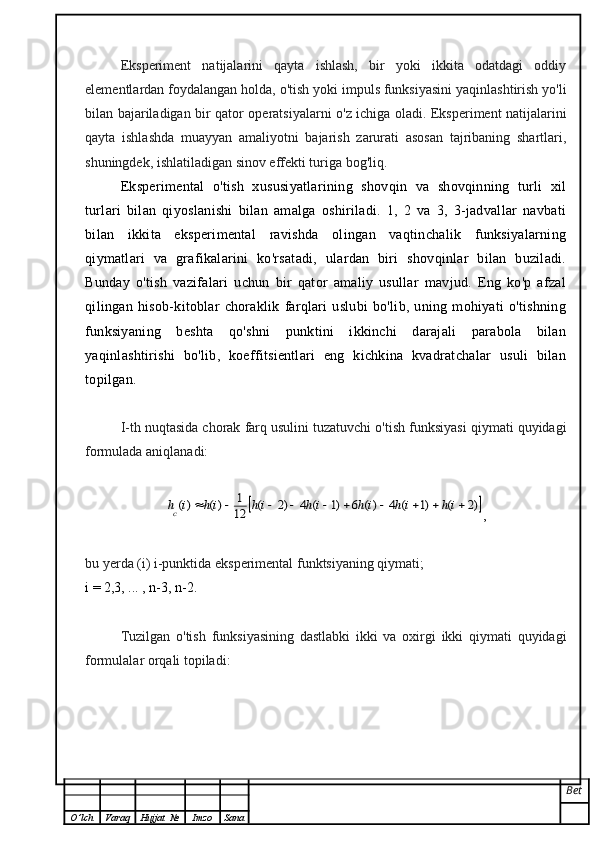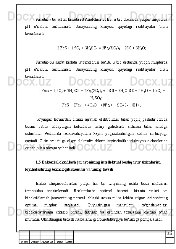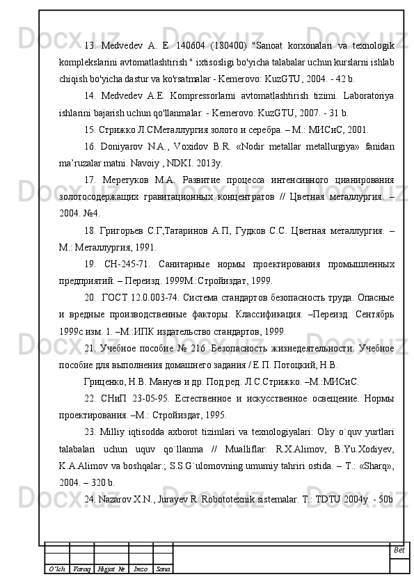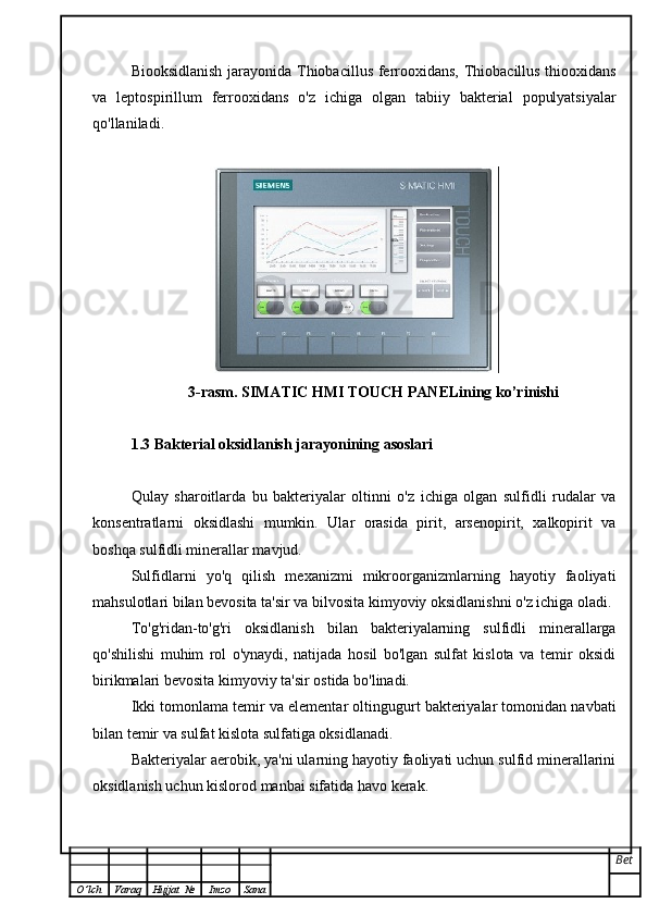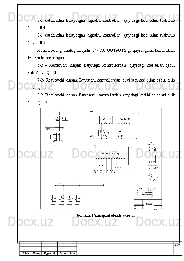 2.5 Avtomatlashtirish jarayonidagi nazorat o’lchov asboblari va qurilmalari ro’yhati………………………………………………………………………...