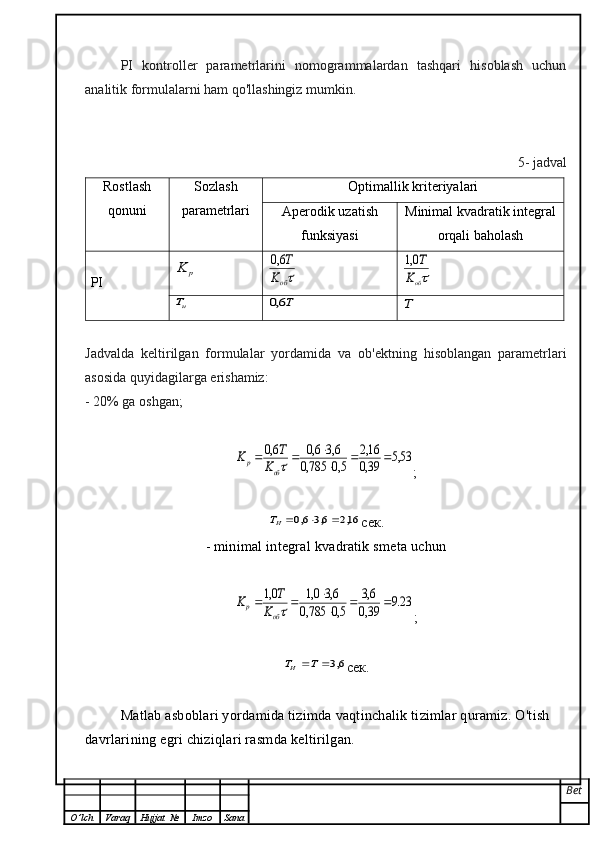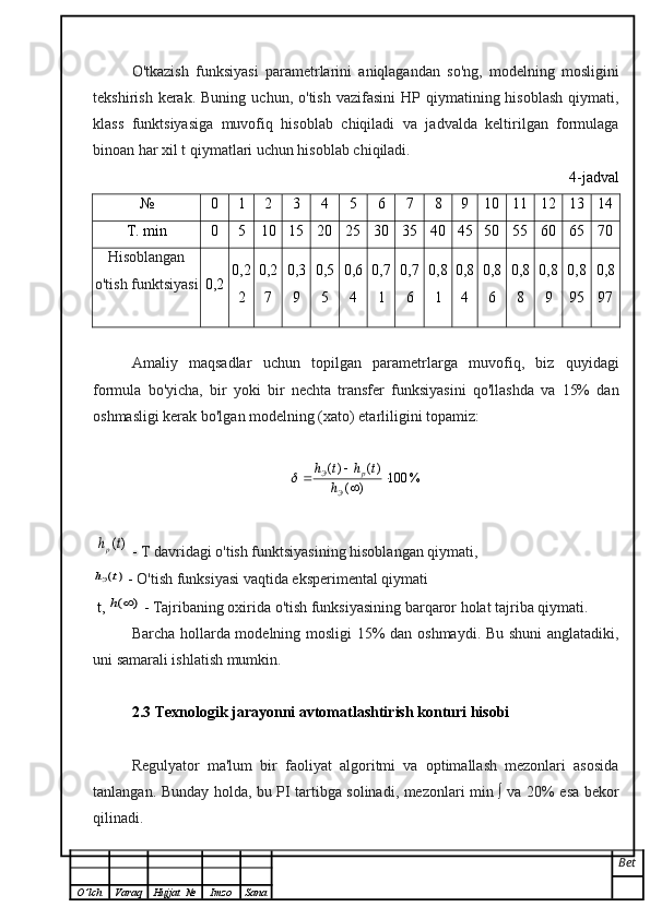 2.1 Texnologik jarayonni avtomatlashtirish rostlash sintezi ……………………..