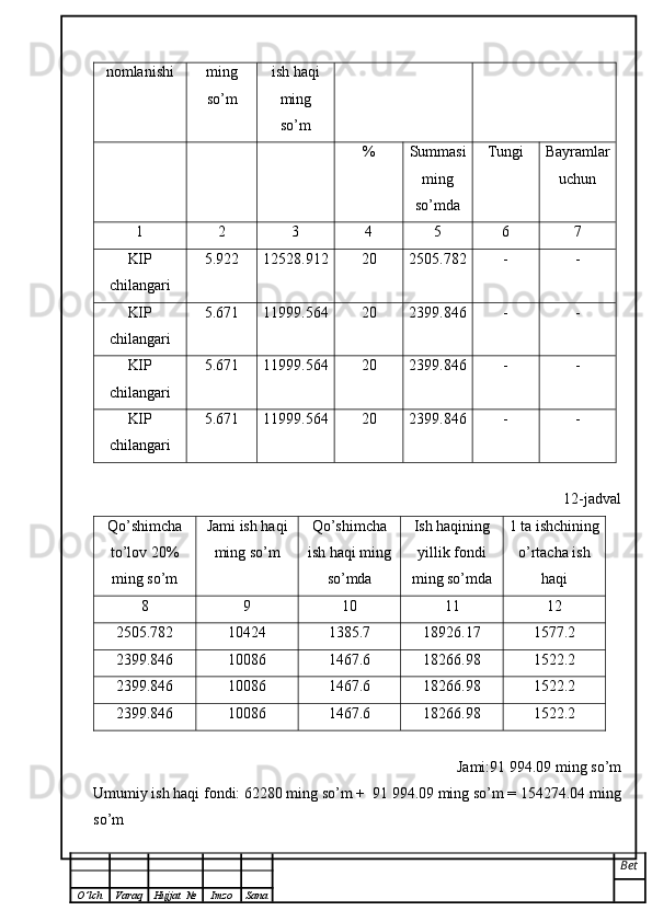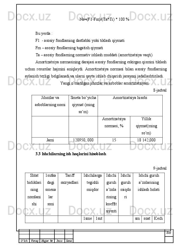 3.5 Ish haqqini hisoblash…………………………………………………………