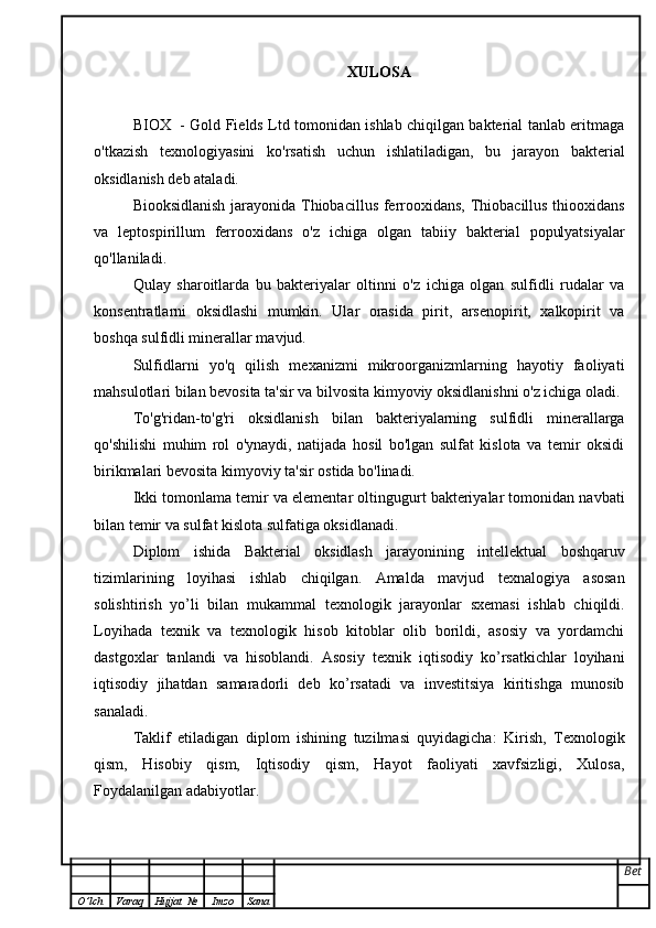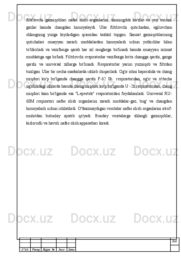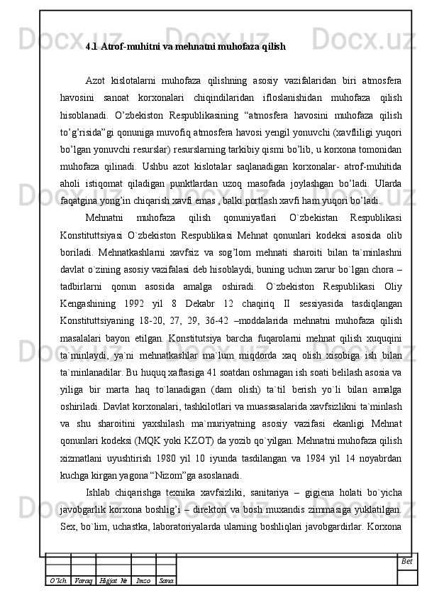 4.1 Atrof-muhitni va mehnatni muhofaza qilish…………..………………………