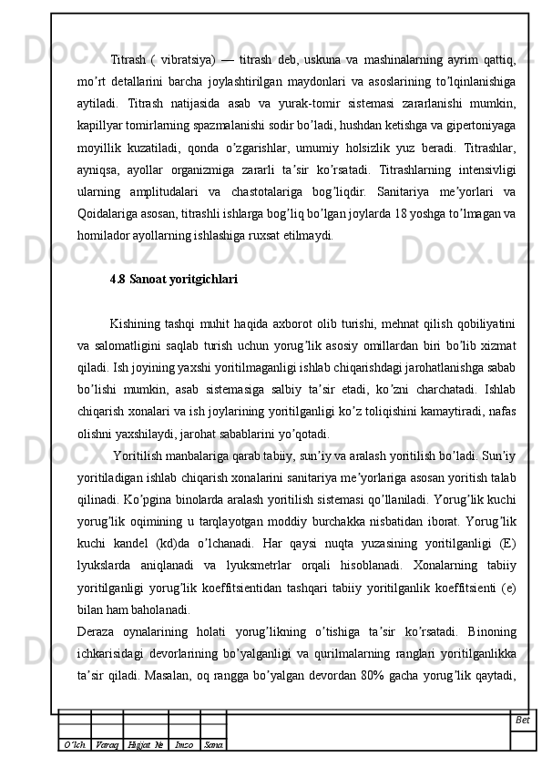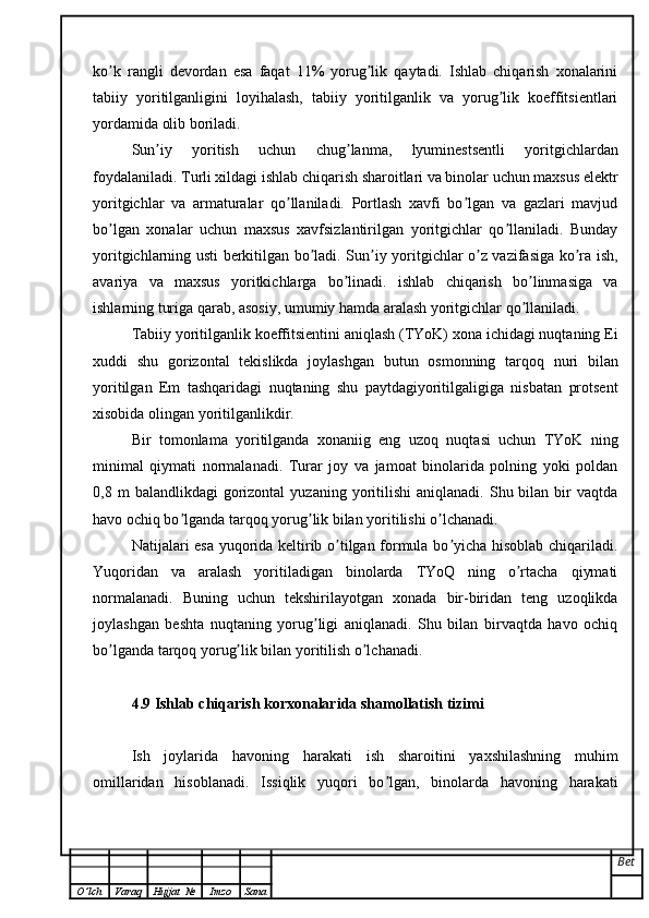 4.8 Sanoat yoritgichlari ……………………………………..……………………