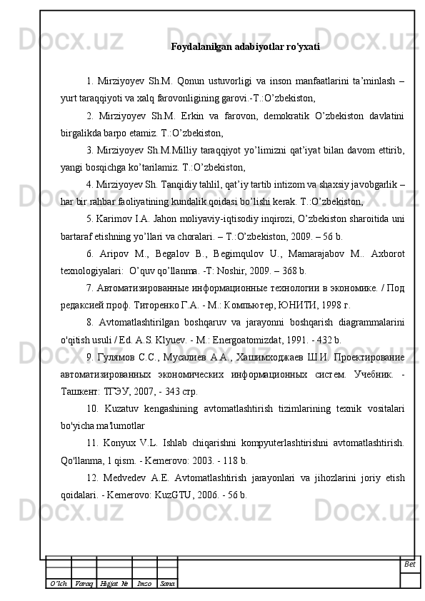 FOYDALANILGAN ADABIYOTLAR……………………………………………