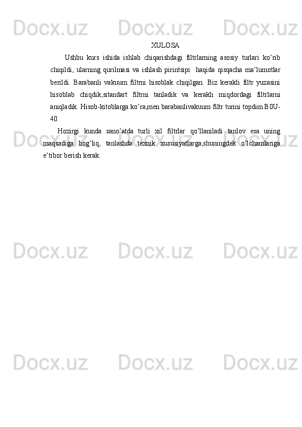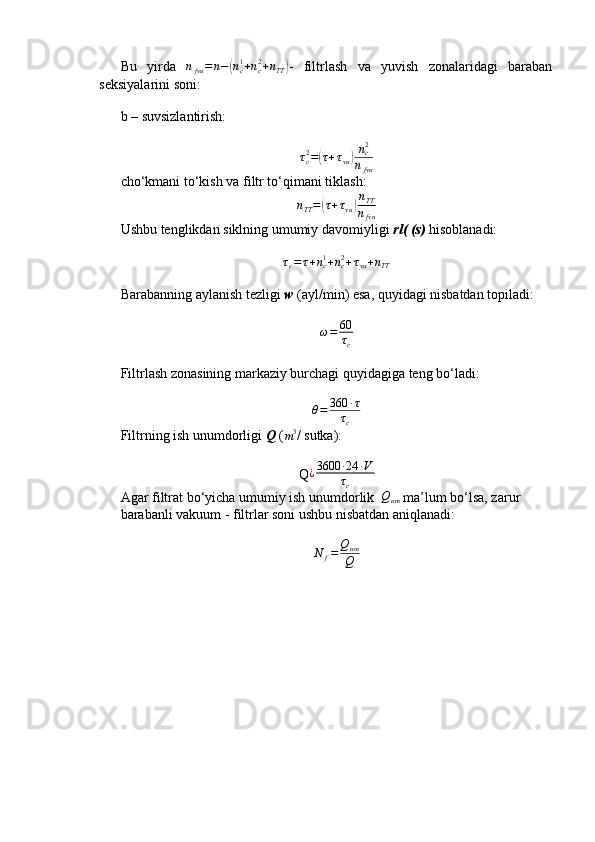 Barabanli vakuum-filtr qurilmasini loyihalash