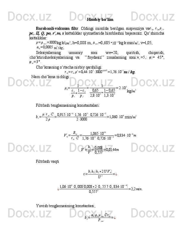 | 4. | Hisoblash formulalari .......................................................................... | 15 |