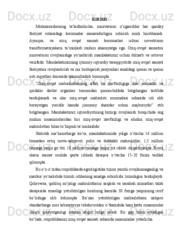 | 1 | O’xshash uskunalar tahlili.................................................................... | 5 |