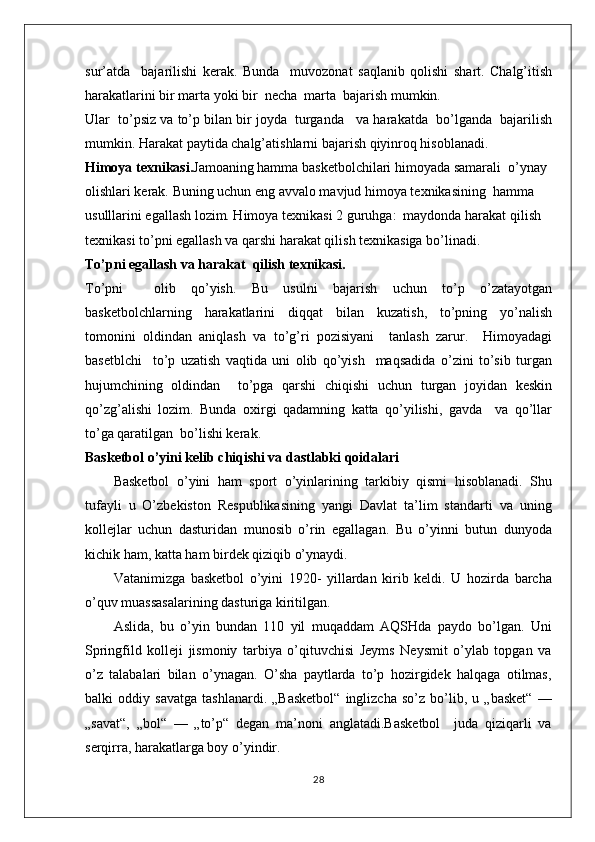 Basketbol o’yinida himoyada individual xarakatlanish taktikasi
