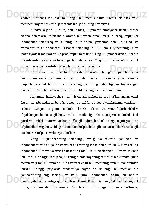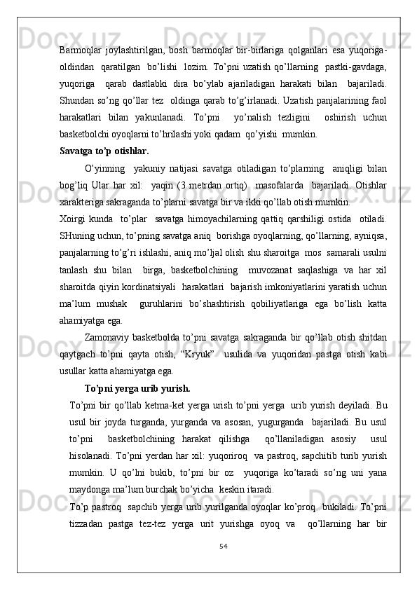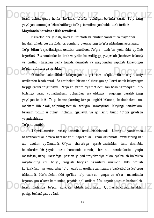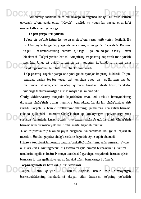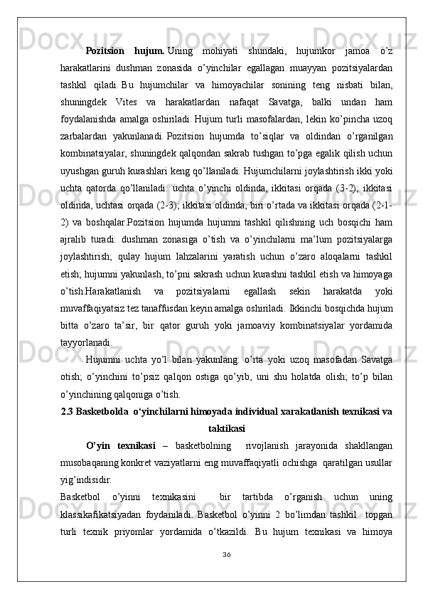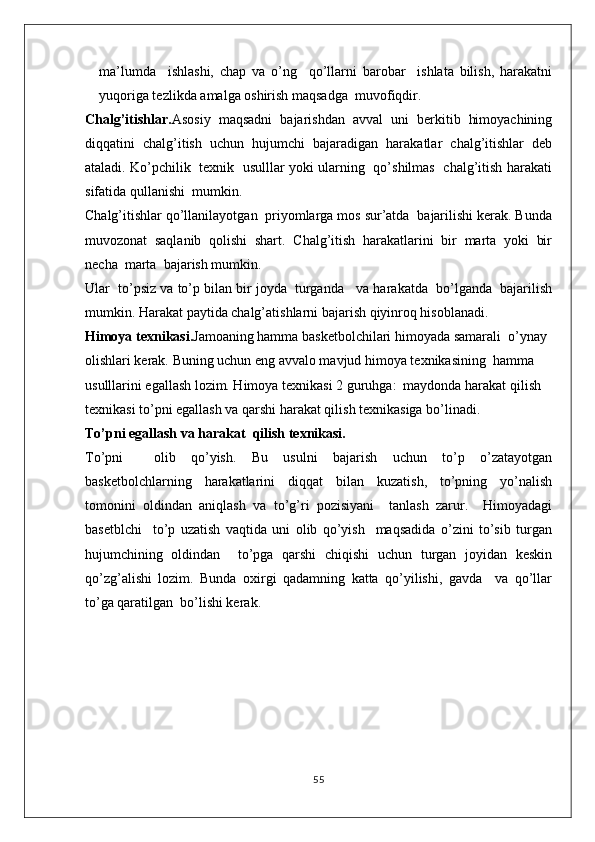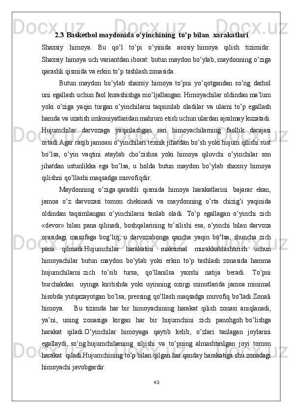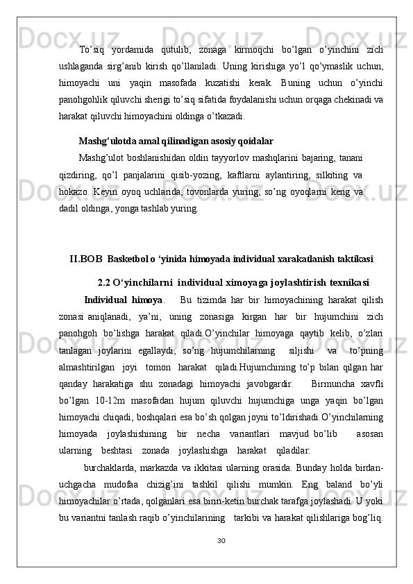 Basketbol o’yinida individual xarakatlanish taktikasi