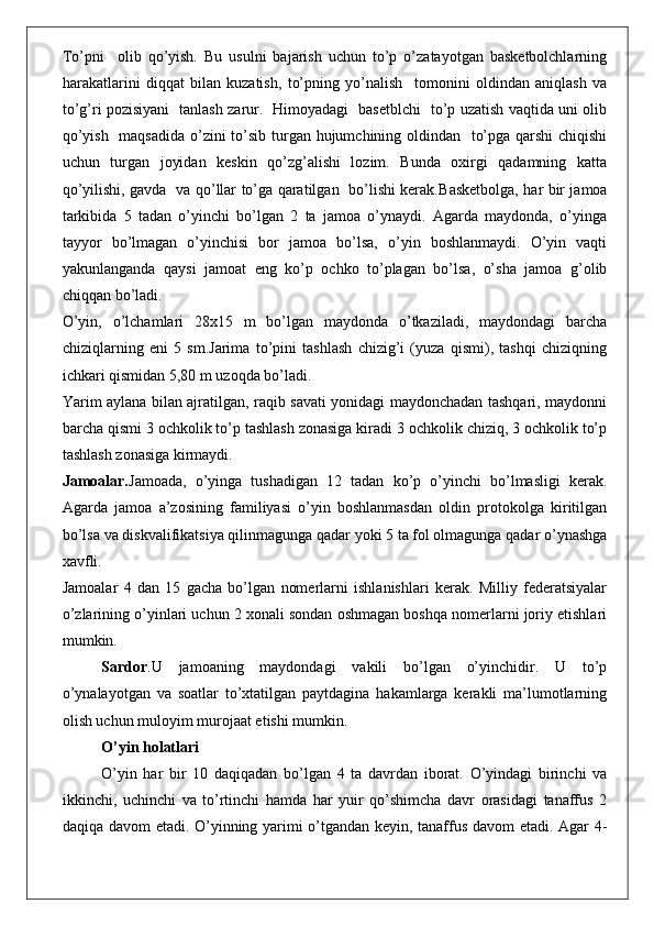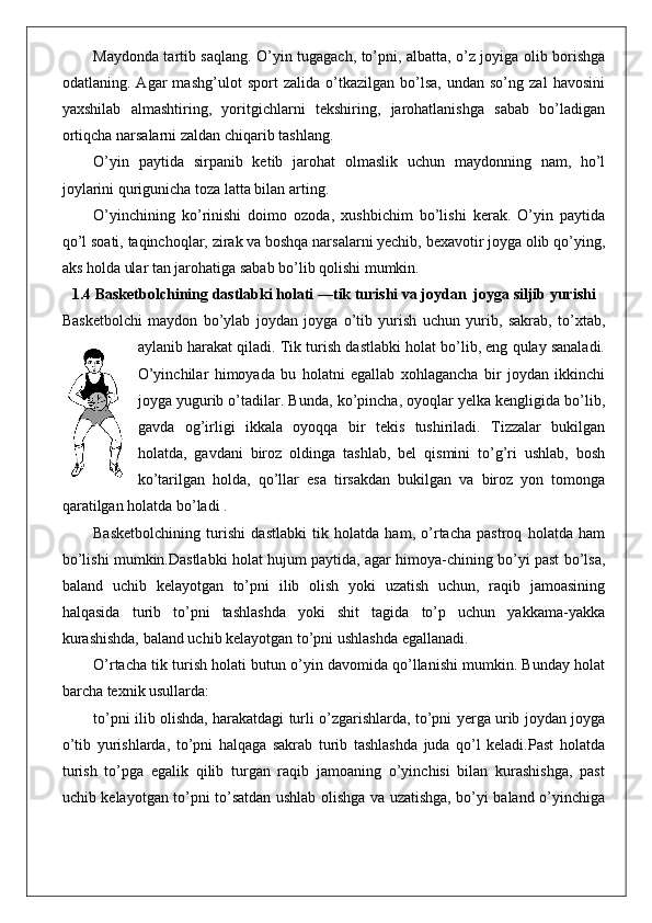 Basketbol o’yinida o’yinchining to’psiz xarakatlari
