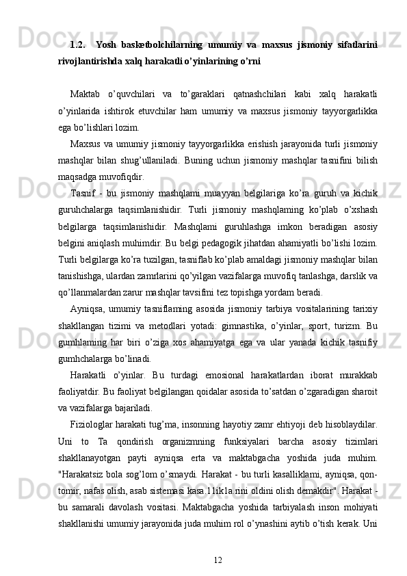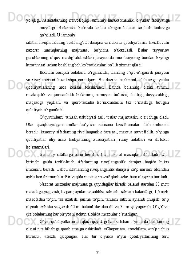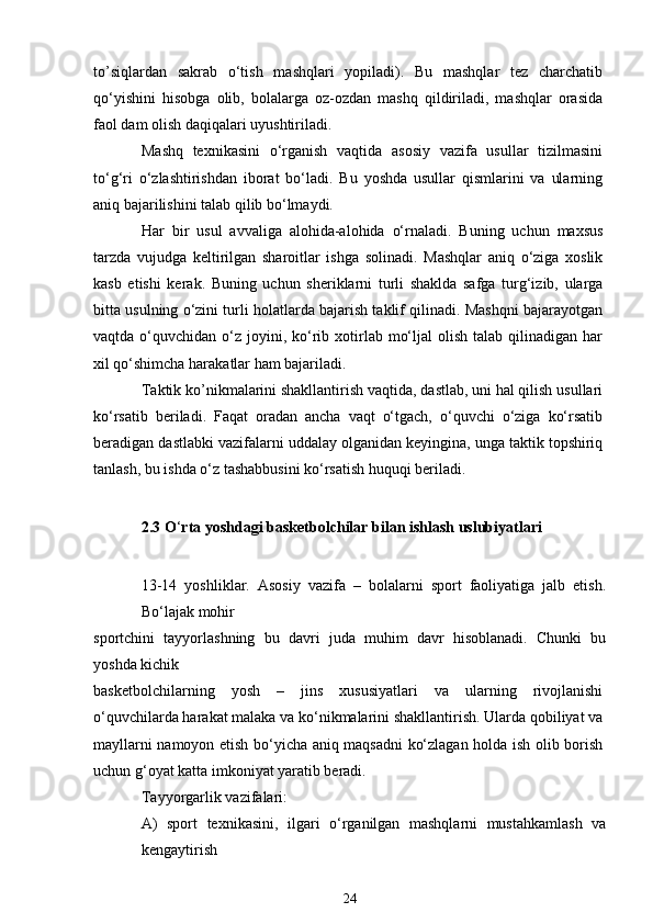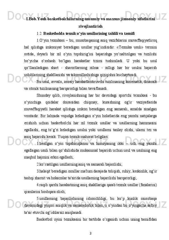 Basketbolchilarga jismoniy sifatlarini qo’llash usullari
