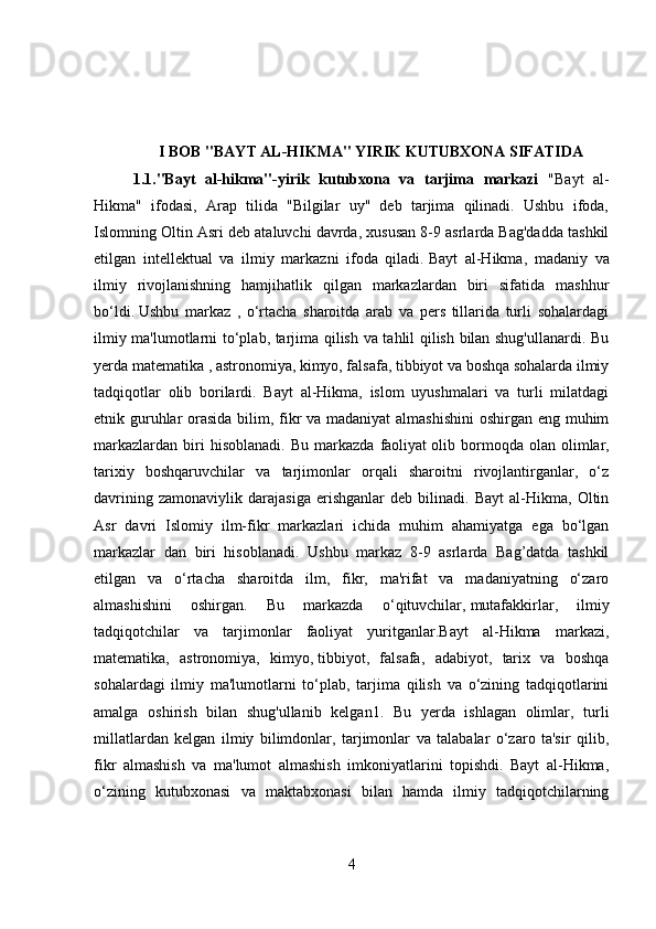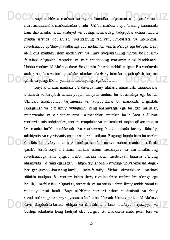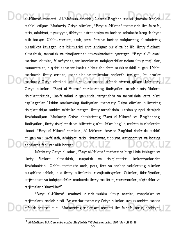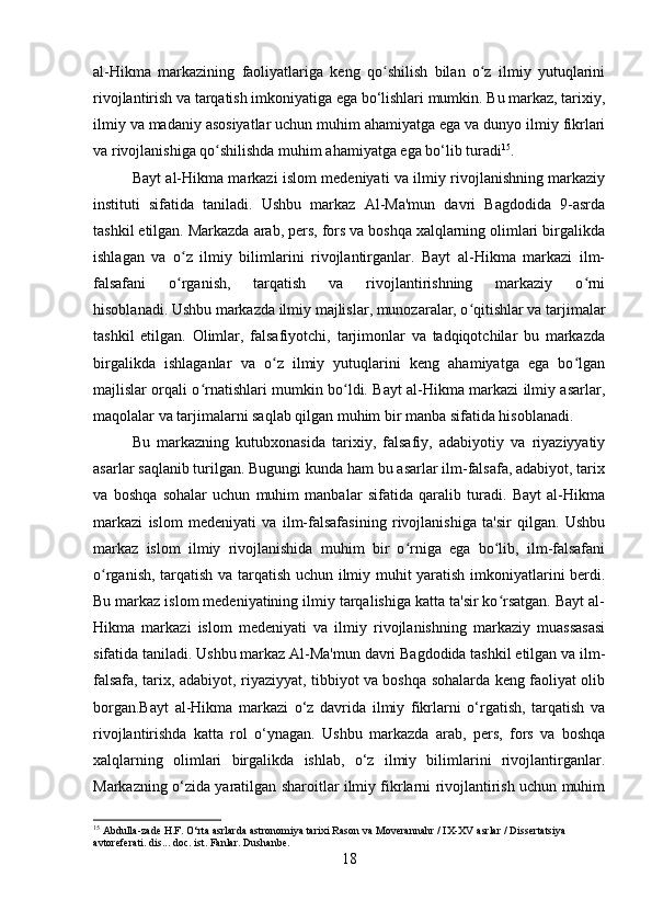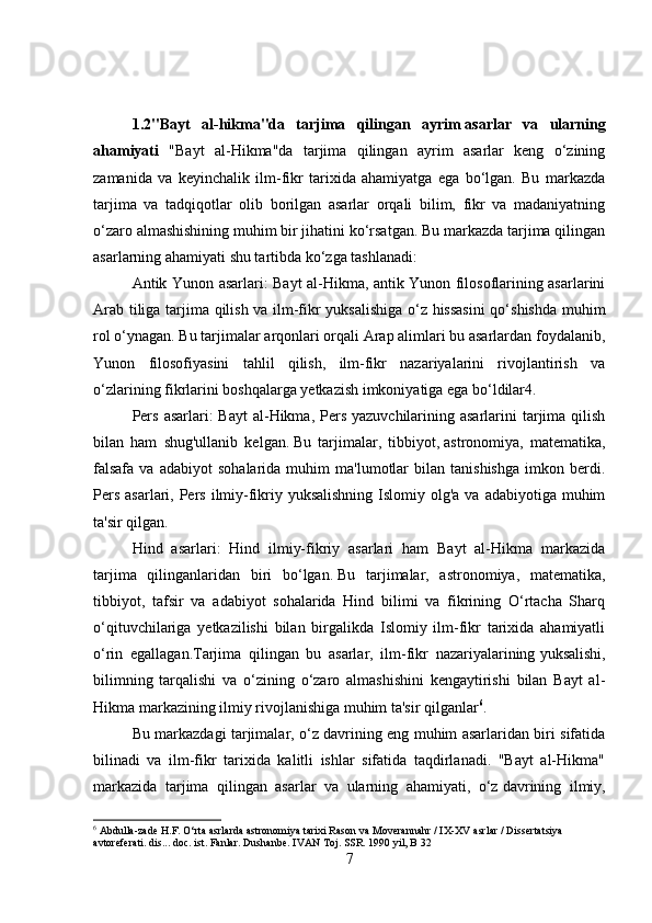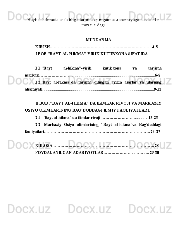 Bayt al-hikmada arab tiliga tarjima qilingan astronomiyaga oid asarlar mavzusidagi
