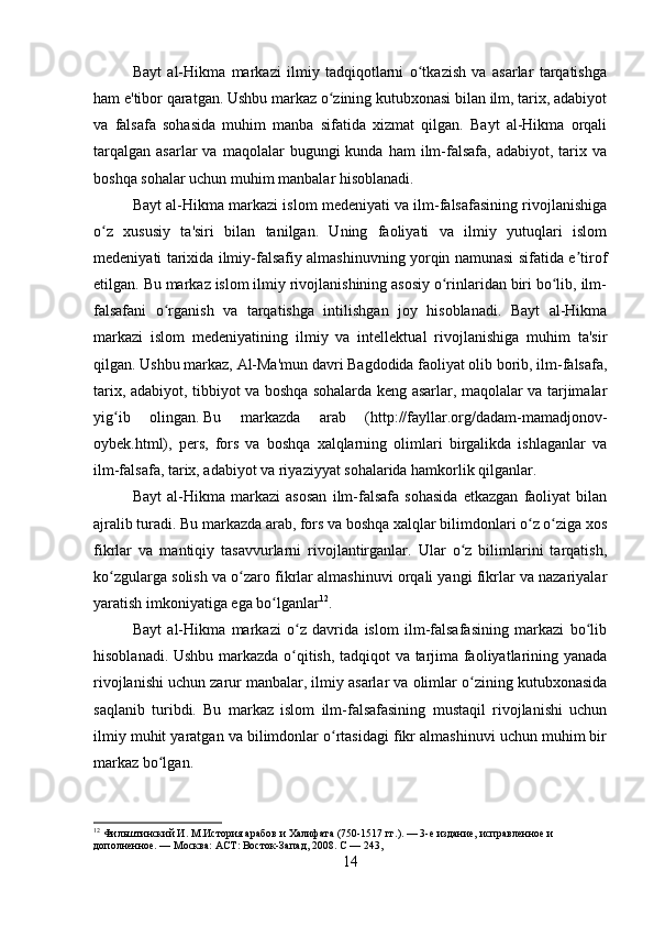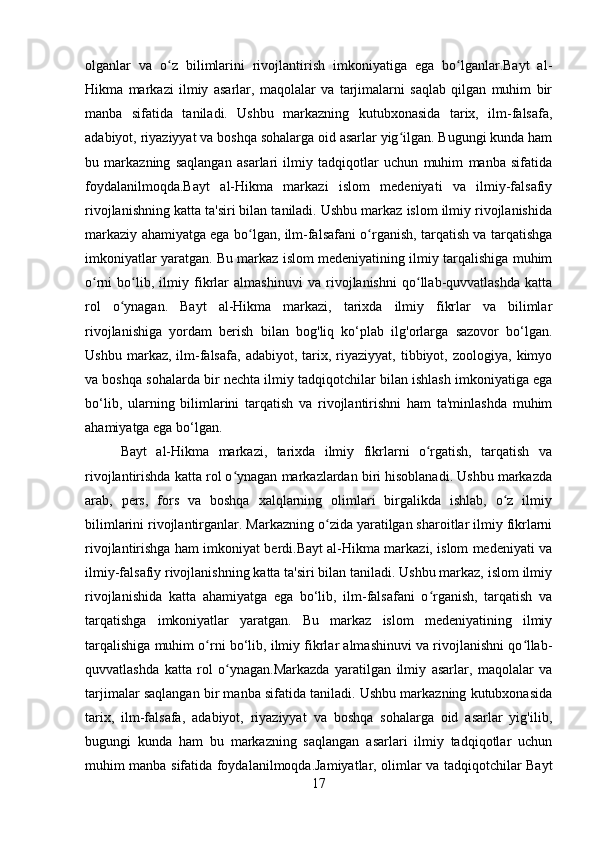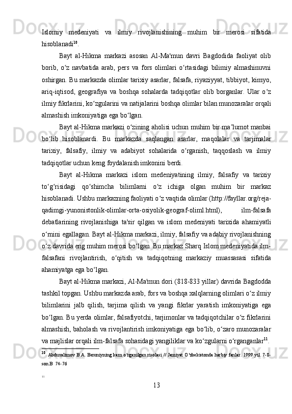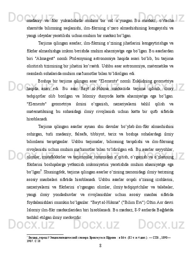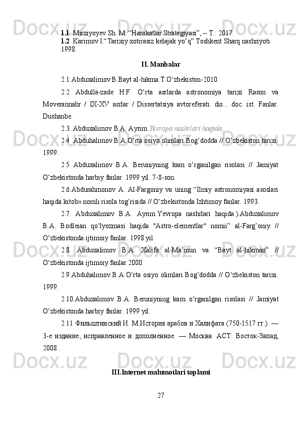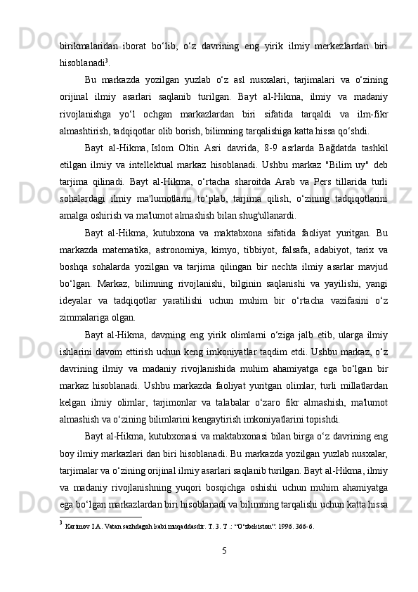 Bayt al-hikmada arab tiliga tarjima qilingan astronomiyaga oid asarlar mavzusidagi