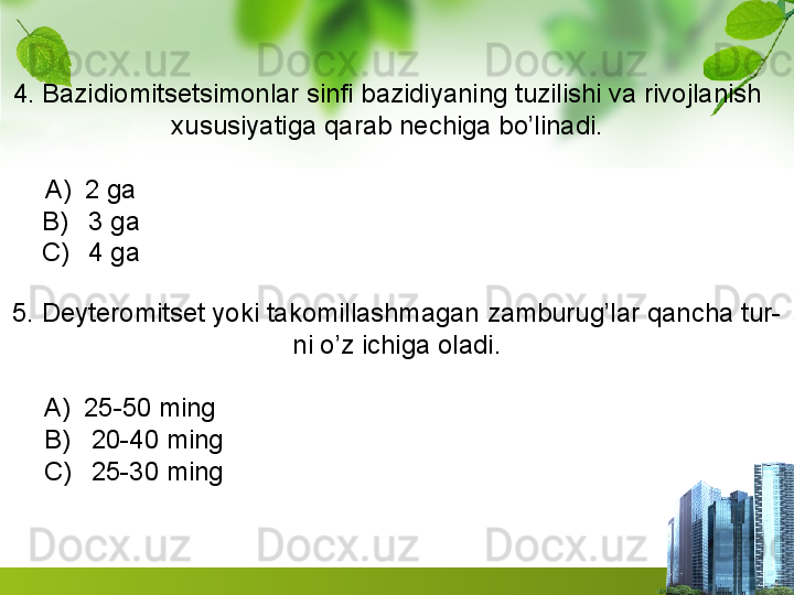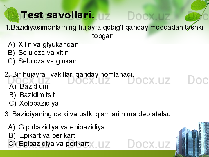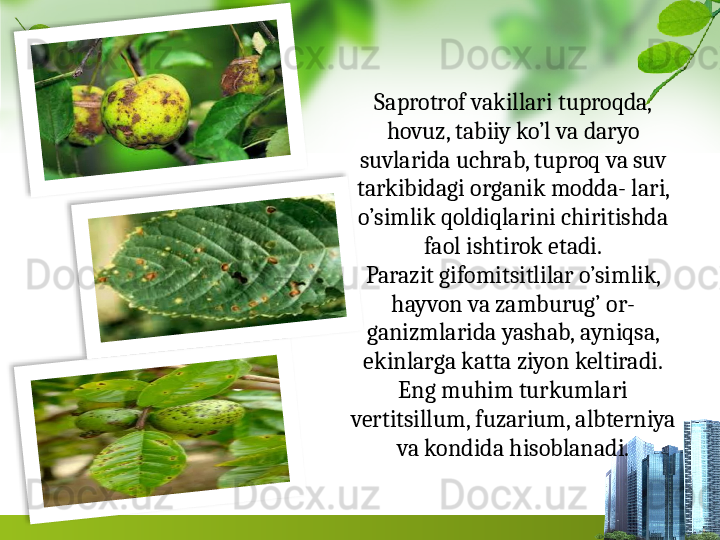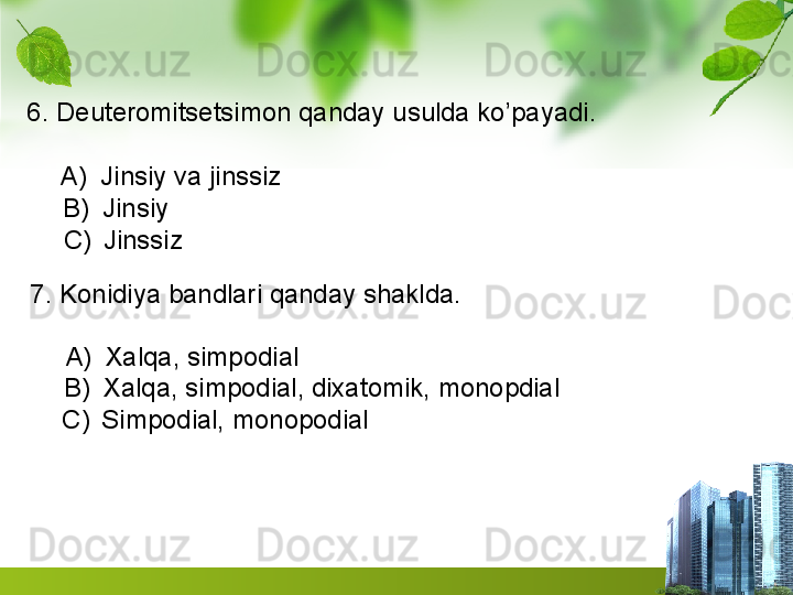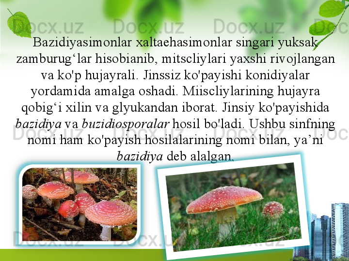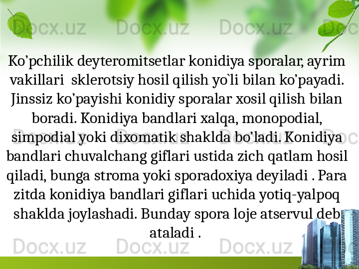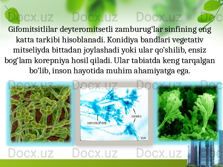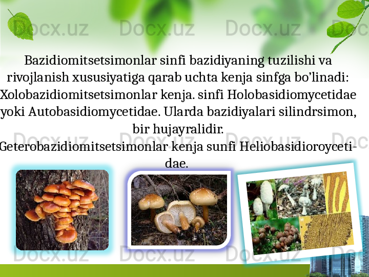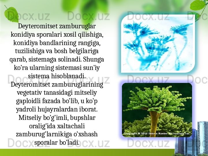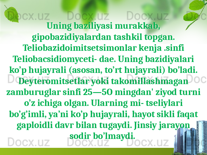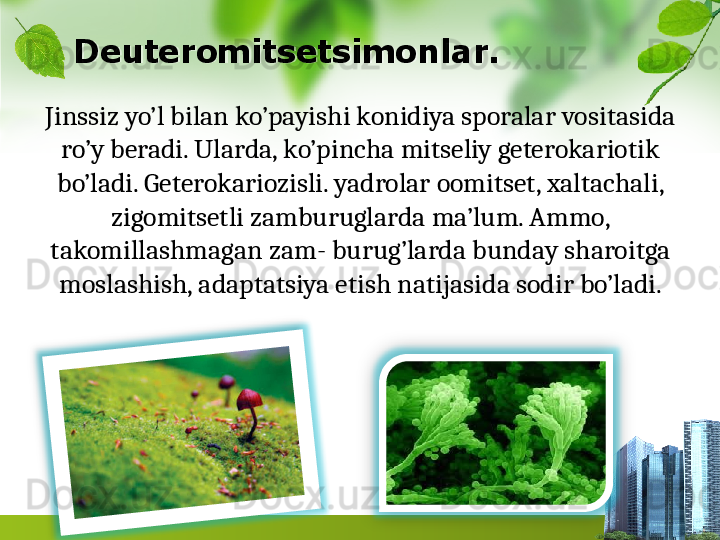 Bazidiyasimonlar, deuteromitsotsimonlar yoki takomillashmagan zamburug’lar sinfi