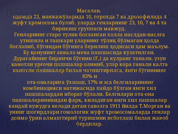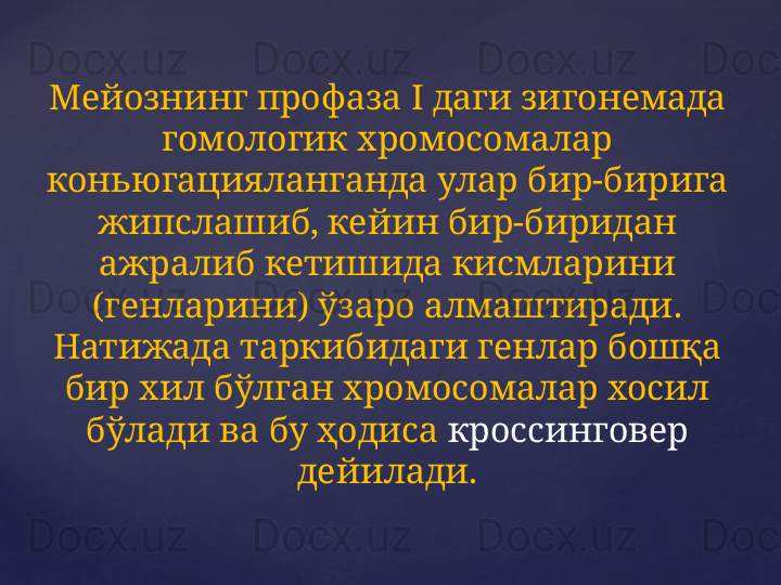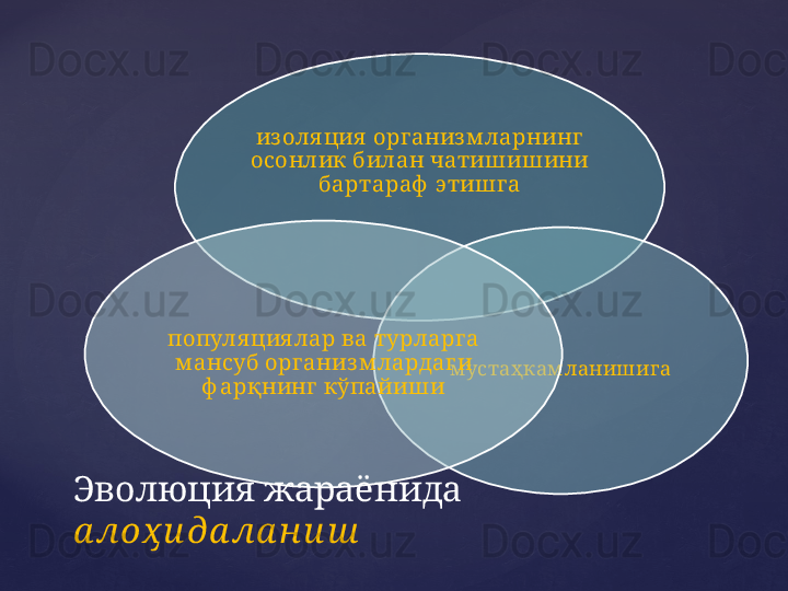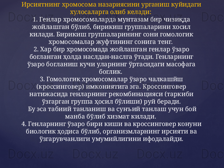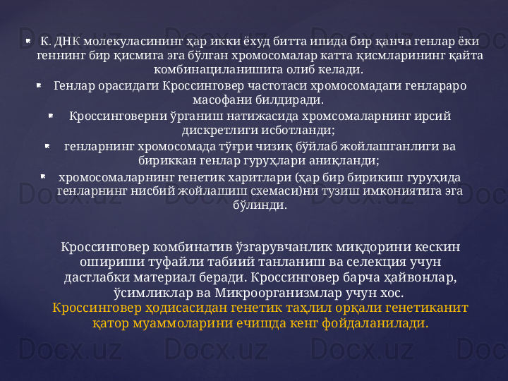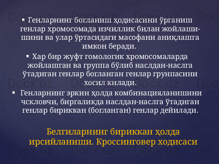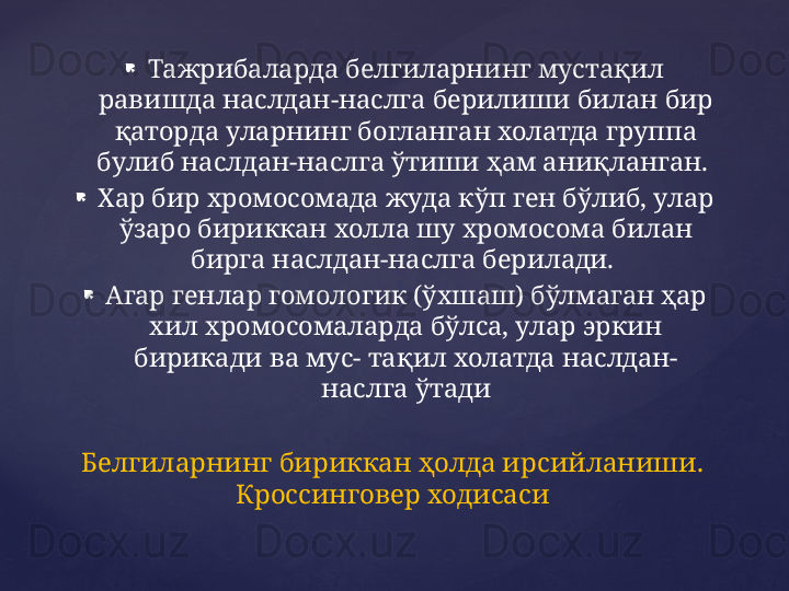 Белгиларни бириккан ҳолда ирсийланиши ва кроссинговер. Алоҳидаланиш эволюцияни дастлабки омили сифатида
