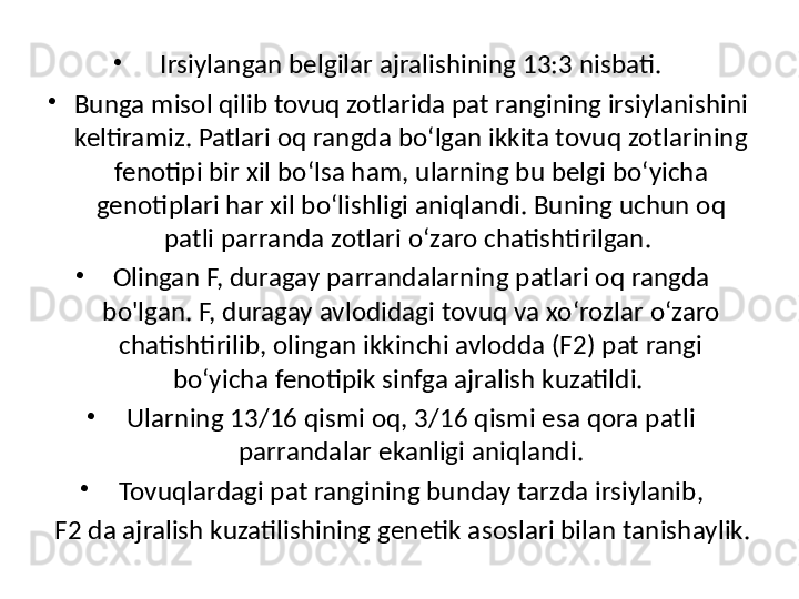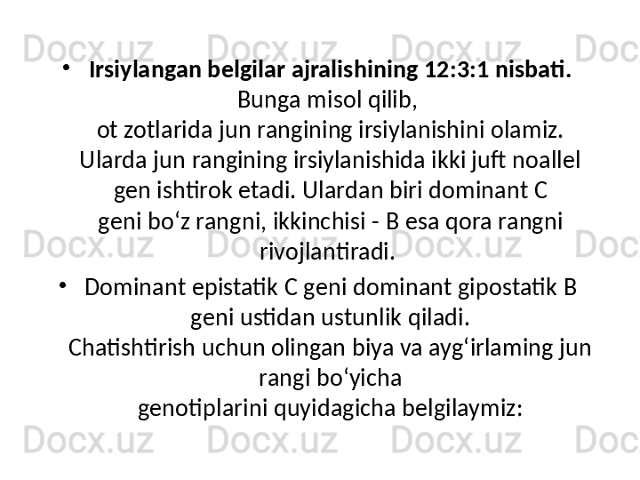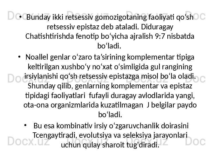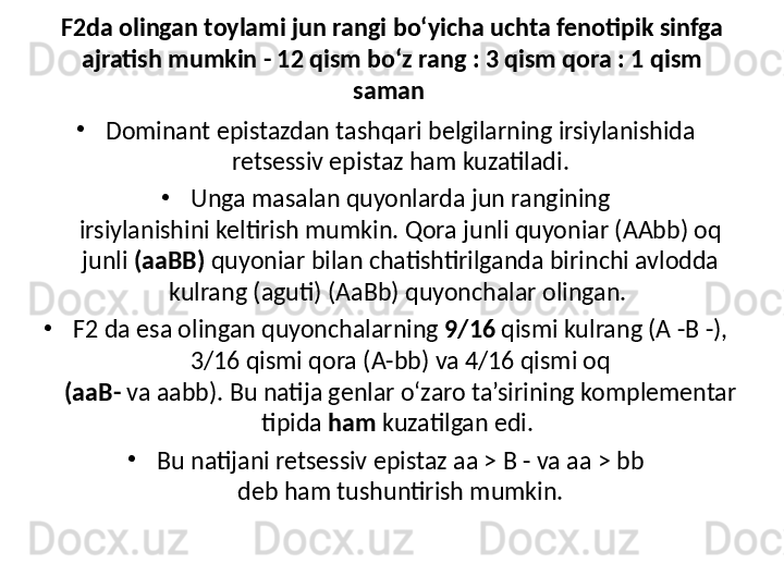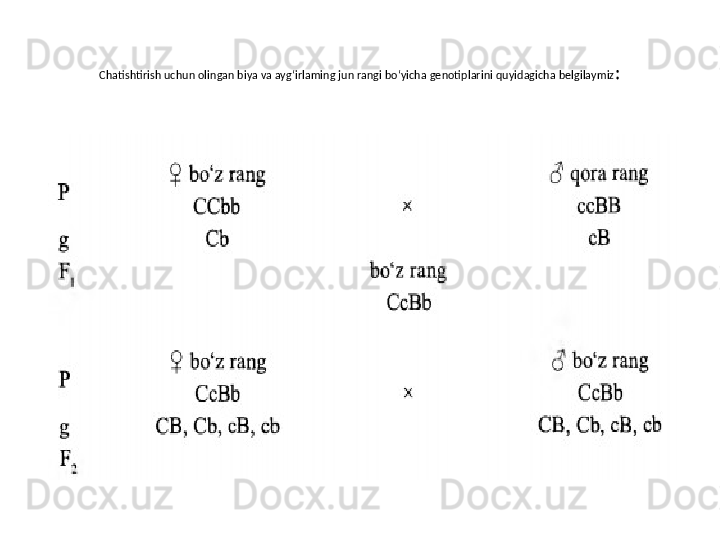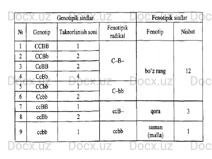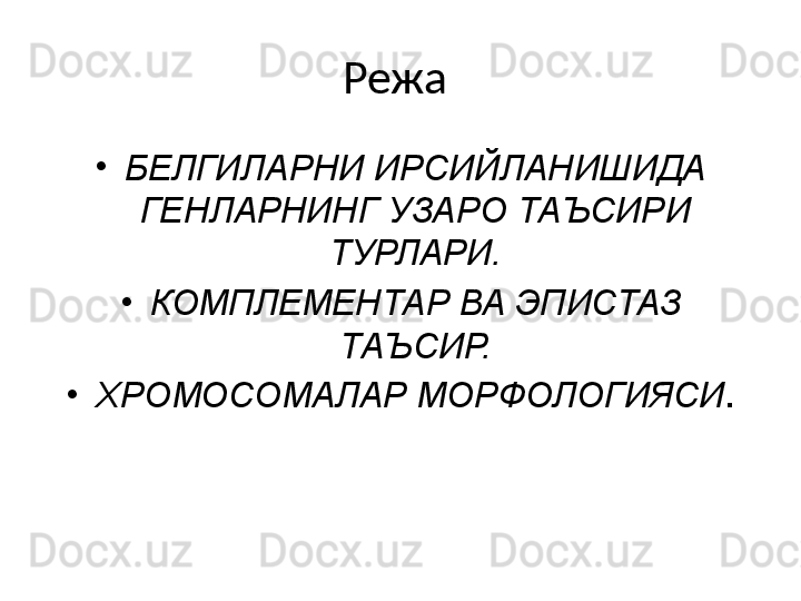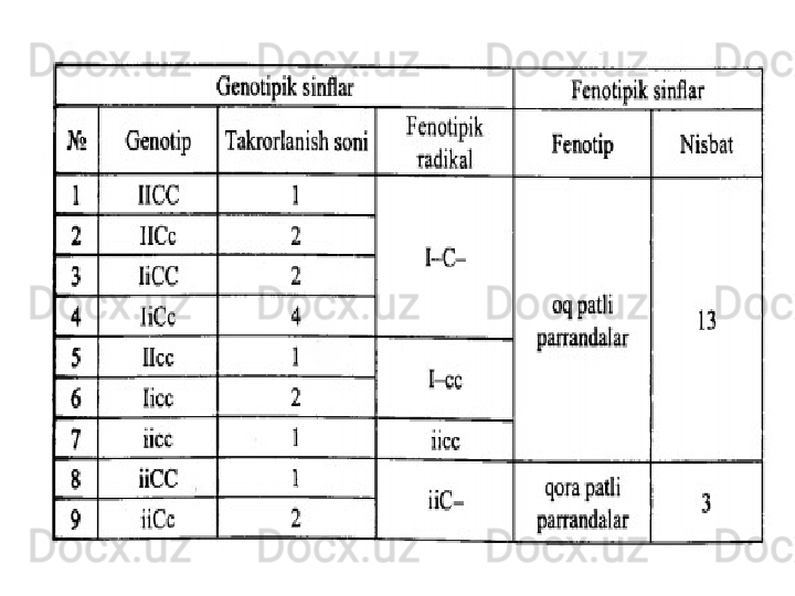 Белгиларни ирсийланишида генларнинг узаро таъсири турлари. Комплементар ва эпистаз таъсири. Хромосомалар морфологияси