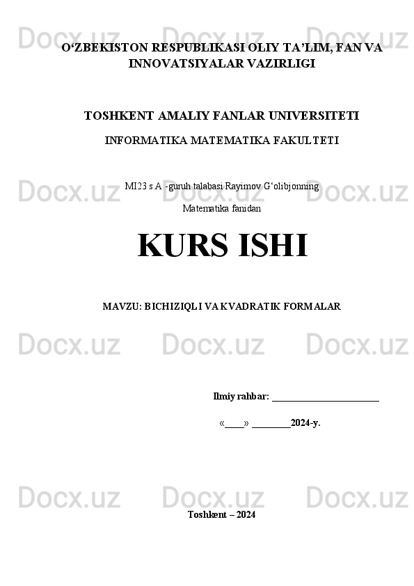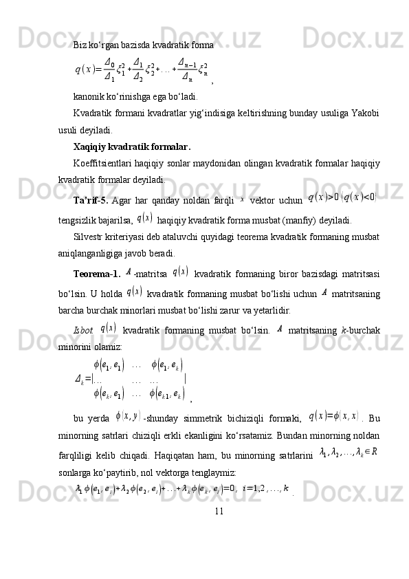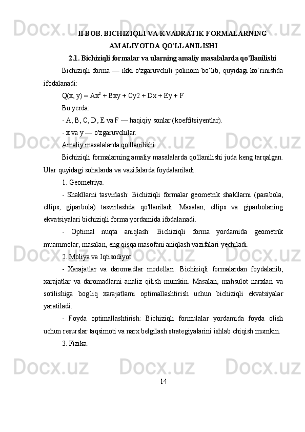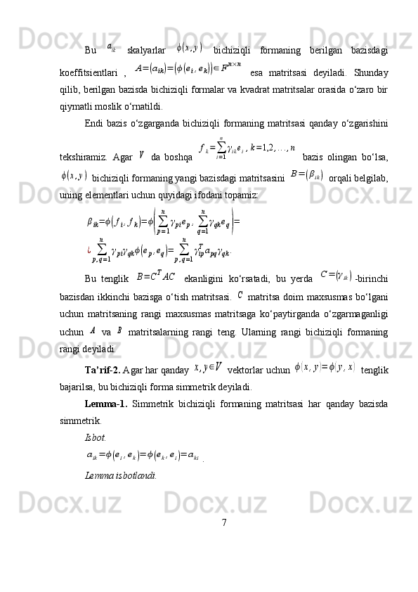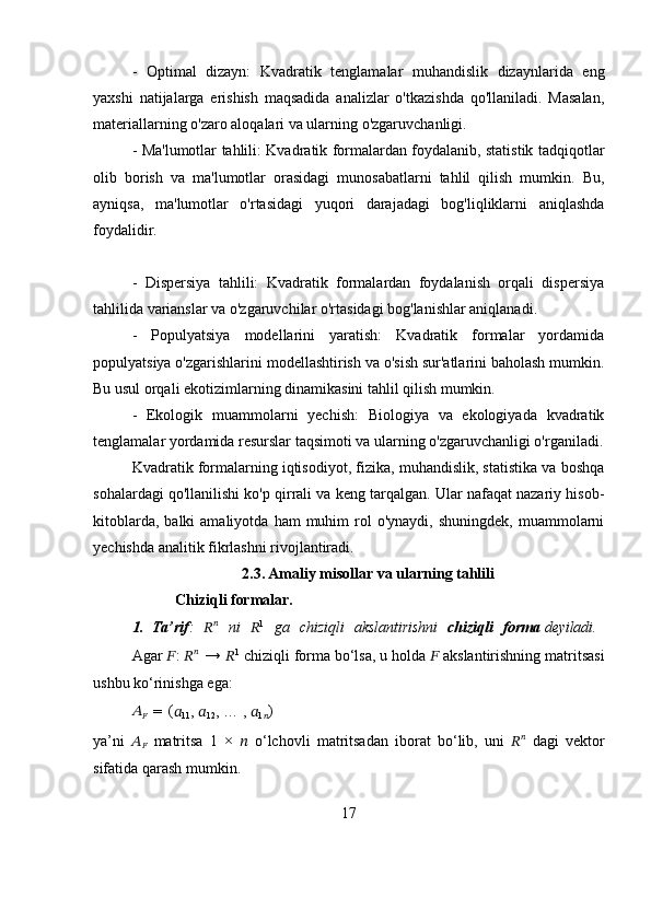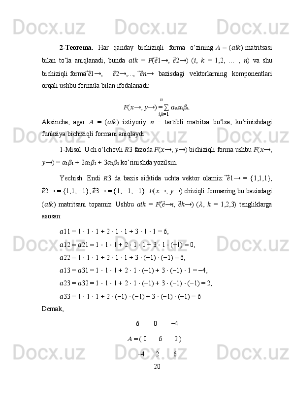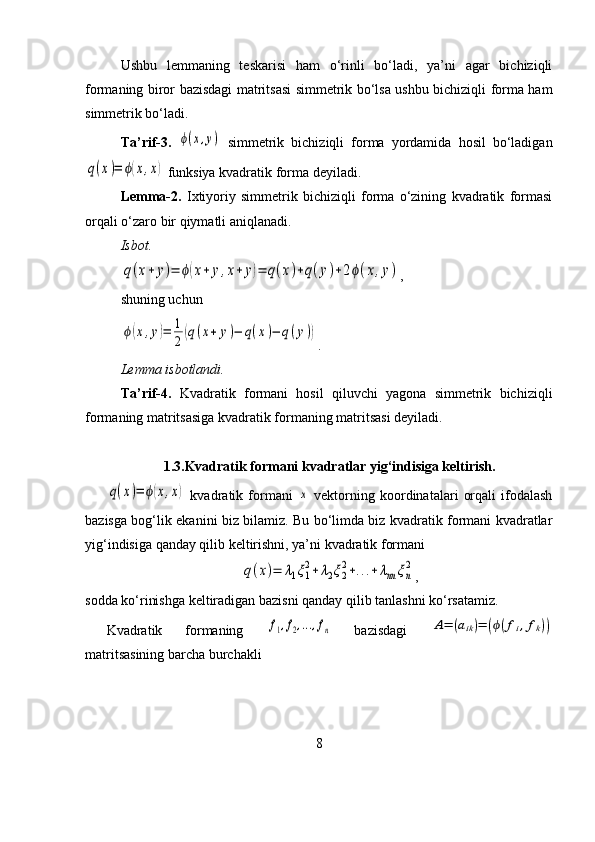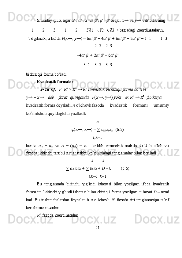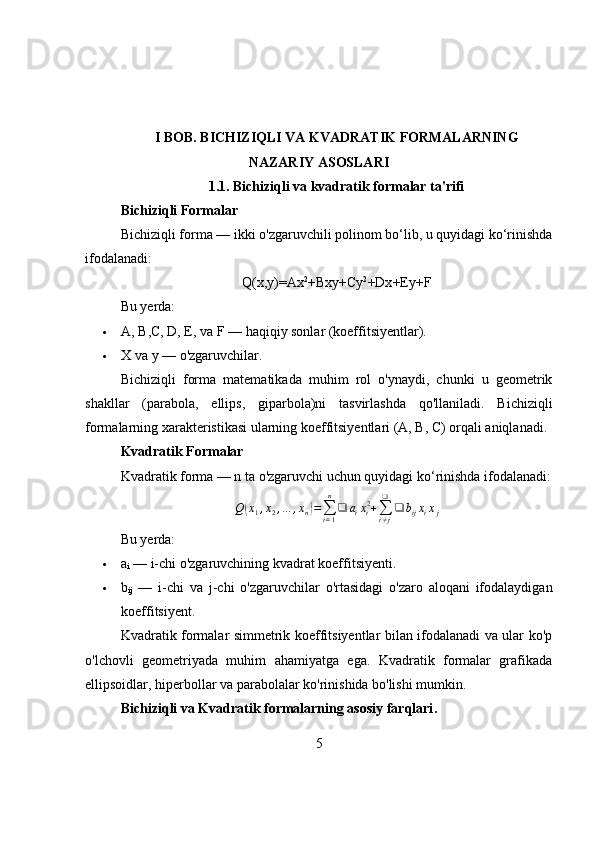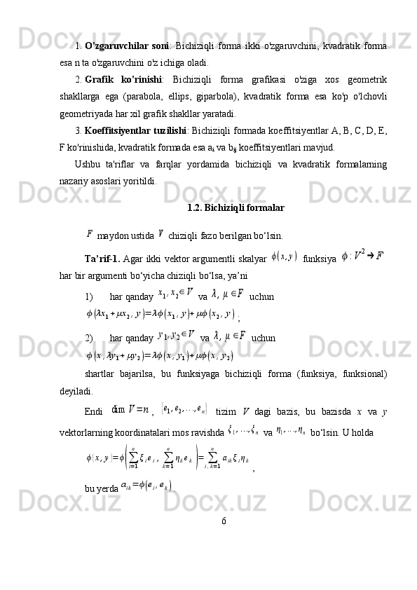 Bichiziqli va kvadratik formalar
