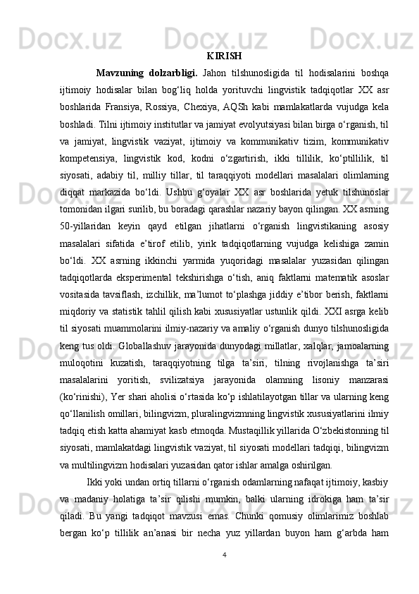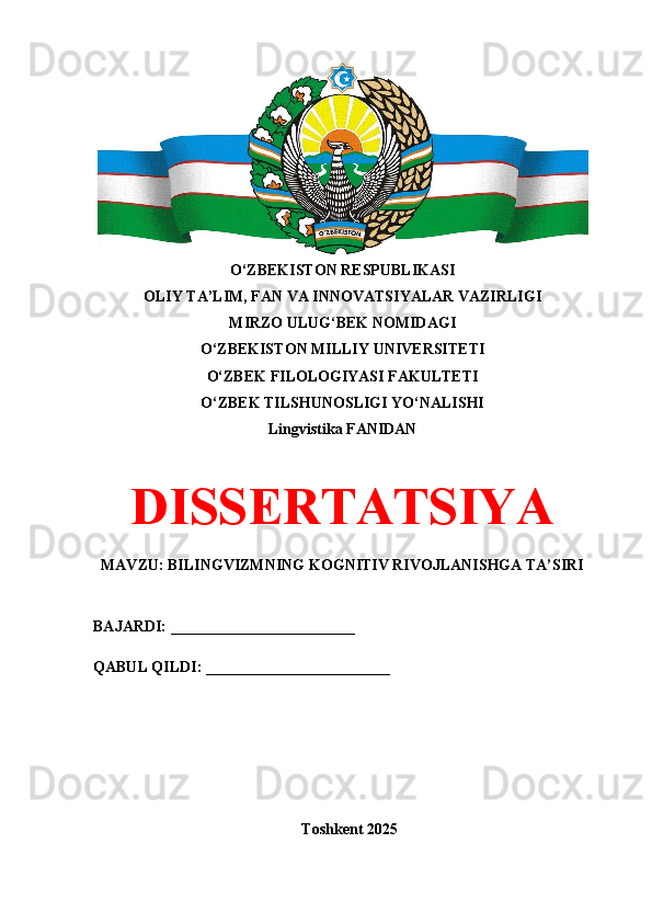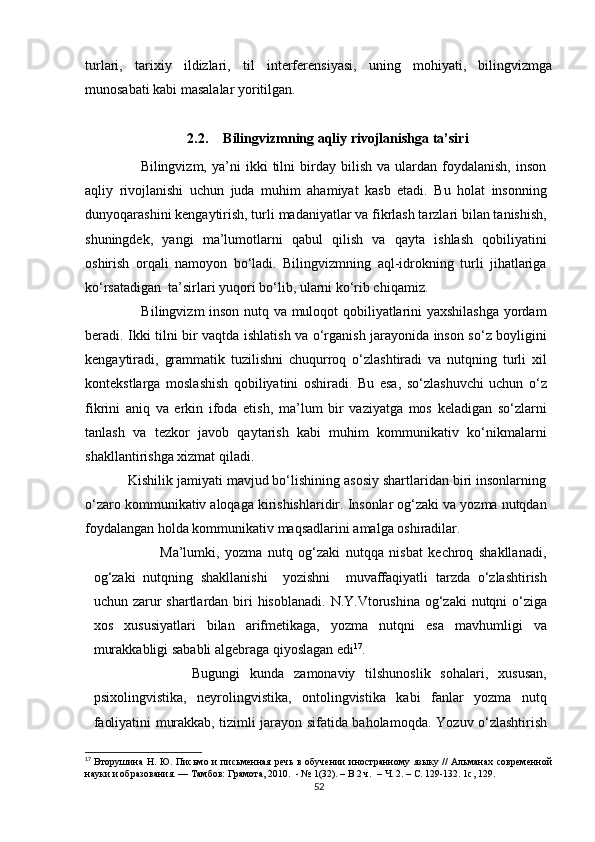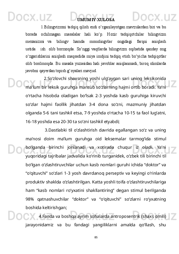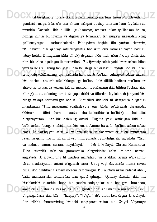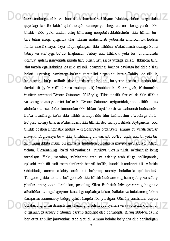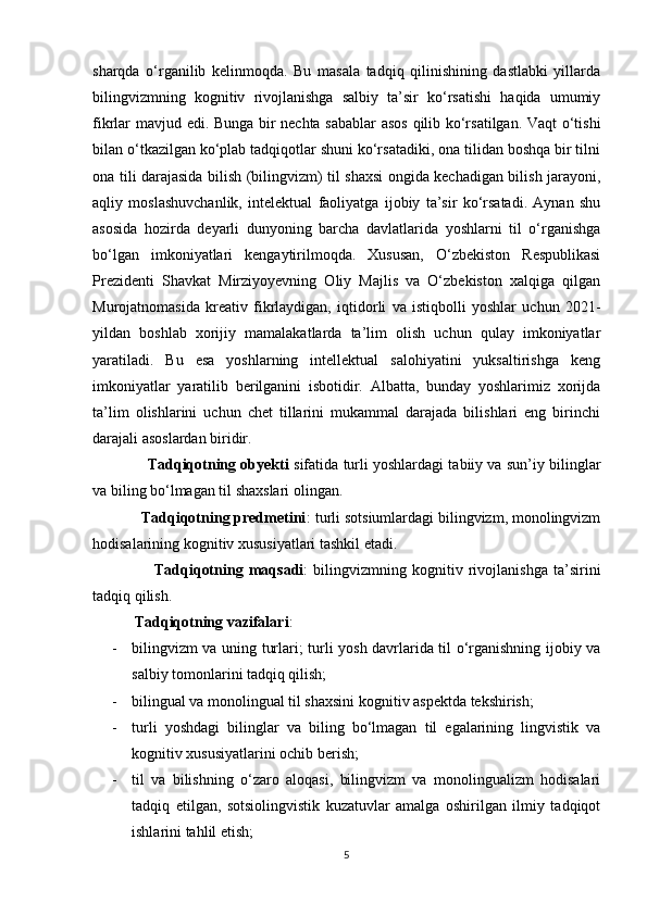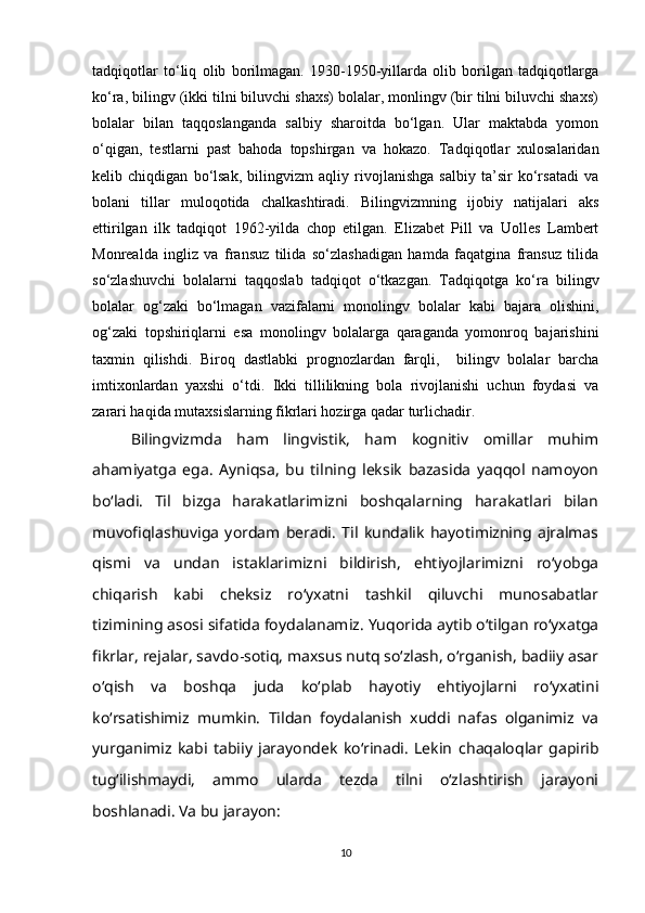 I BOB. BILINGVIZMNING LINGVISTIK VA KOGNITIV AFZALLIKLARI