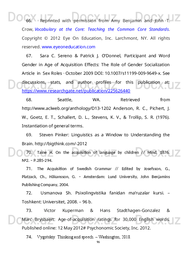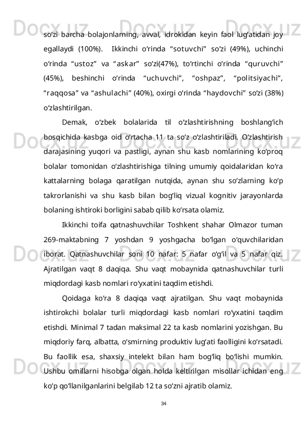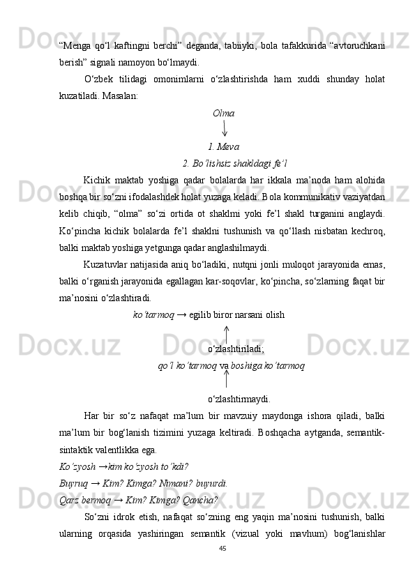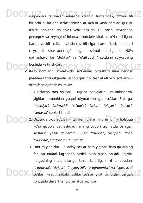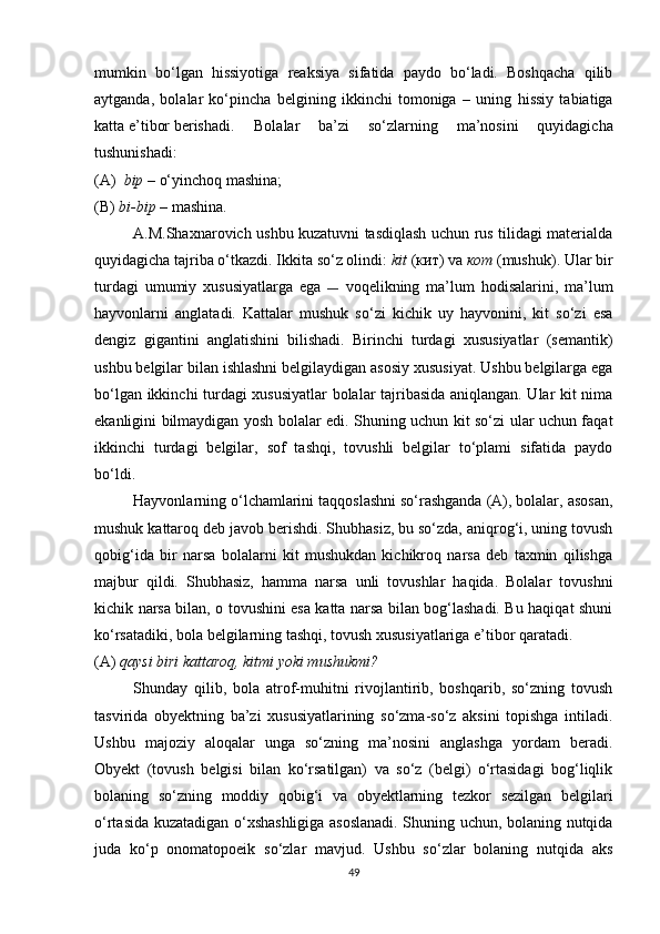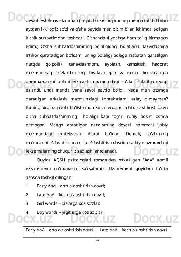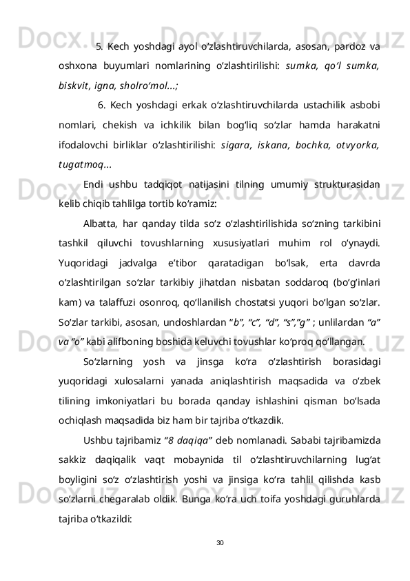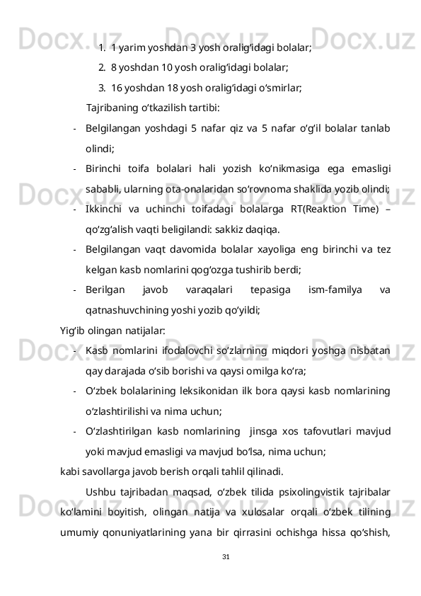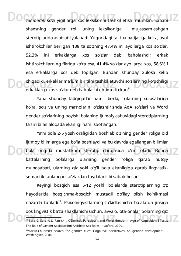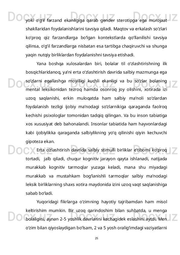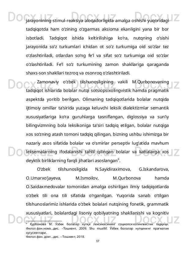 1.2. So‘z ma’nosi o‘zlashtirilishining gender va yosh xususiyatlari bilan bog‘liqligi……………………………………………………………………….15