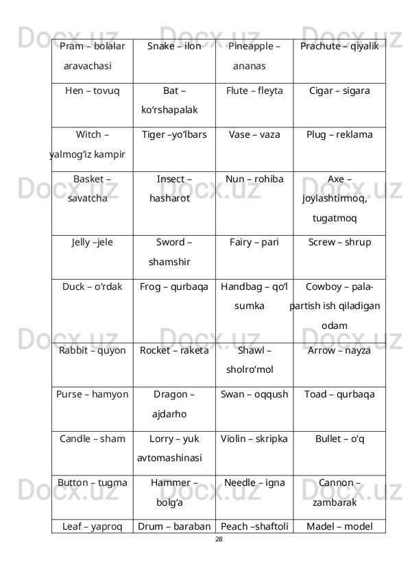 Bob bo‘yicha xulosalar………………………………………………………….34