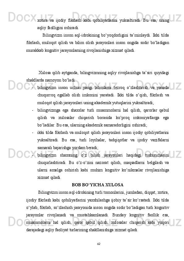 II BOB. BILINGVIZMNING KOGNITIV BILISHGA TA’SIRI