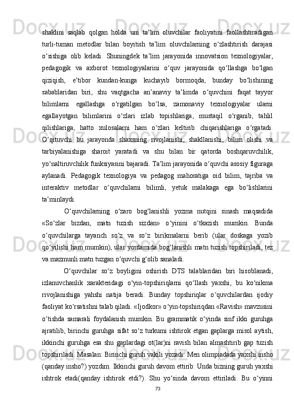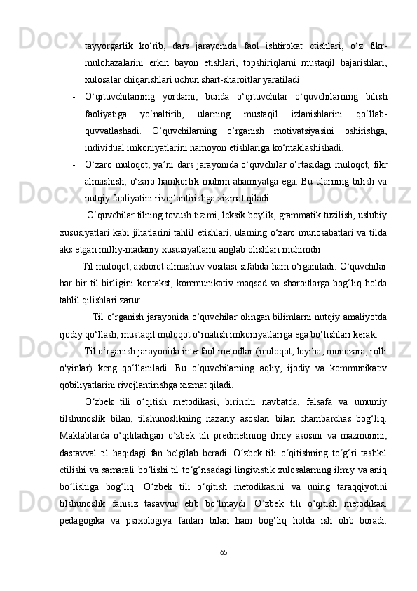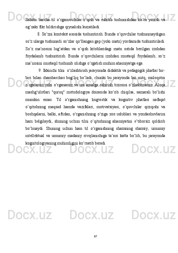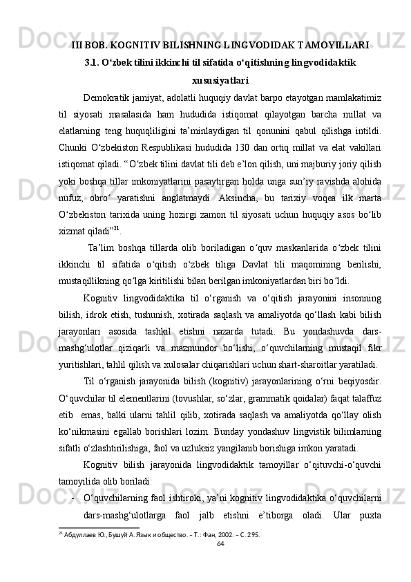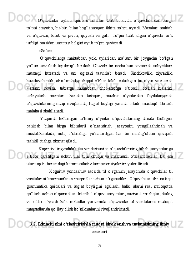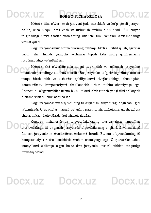 III BOB. KOGNITIV BILISHNING LINGVODIDAKTIK TAMOYILLARI