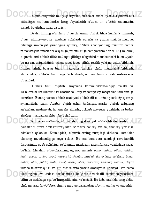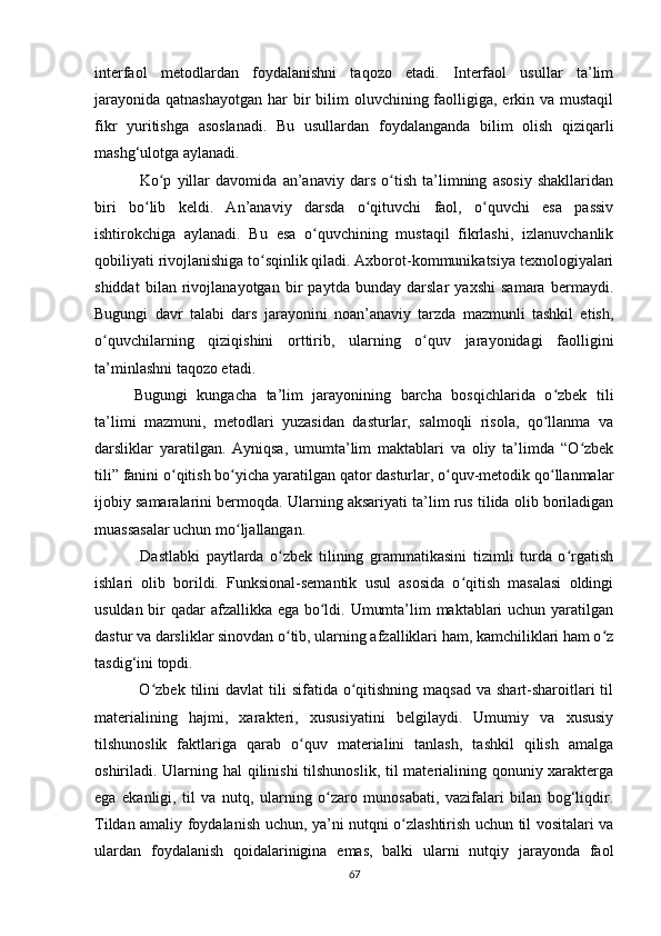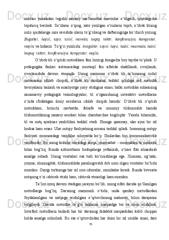 3.1. Oʻzbek tilini ikkinchi til sifatida oʻqitishning lingvodidaktik xususiyatlari .57