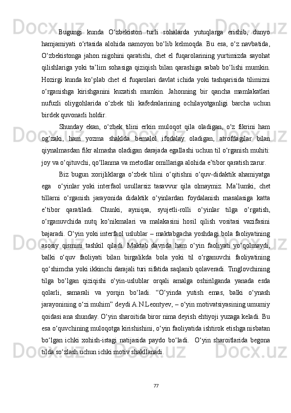 Umumiy xulosalar………………………………………………………………..78