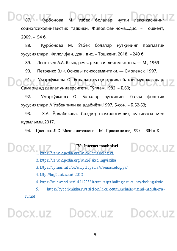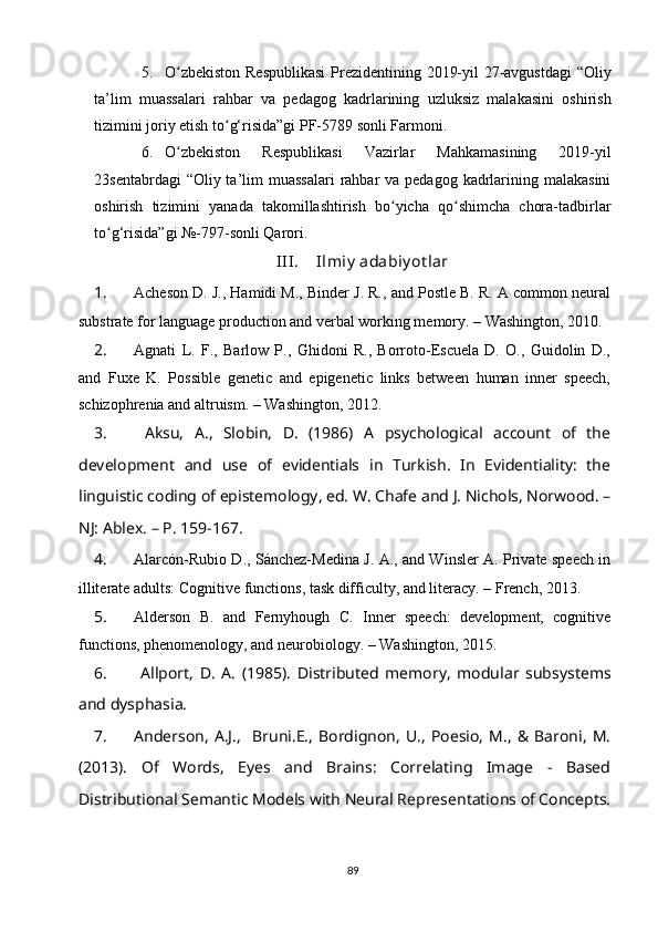 Adabiyotlar ro‘yxati…………………………………………………………...81