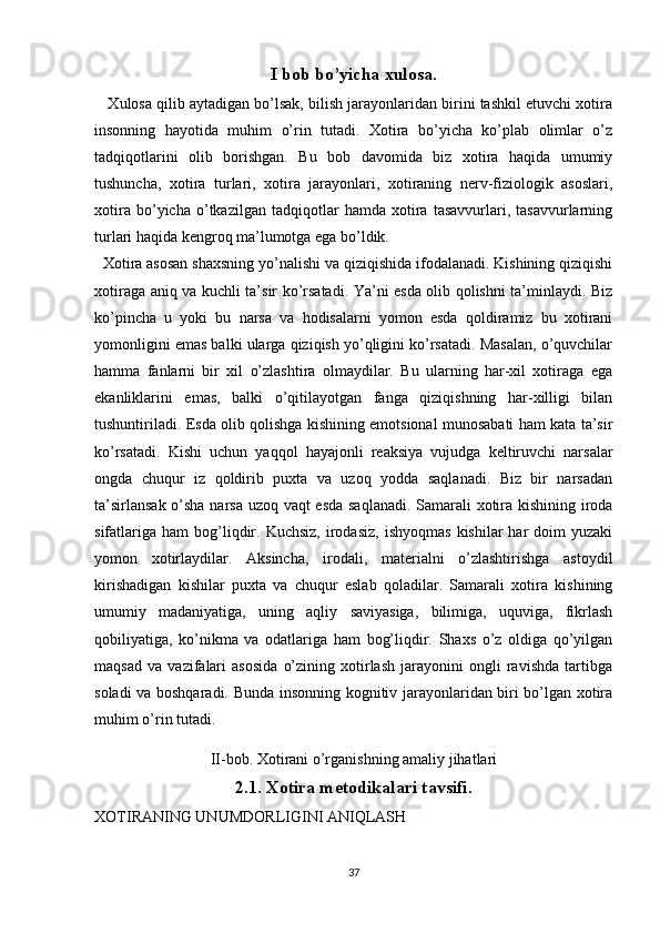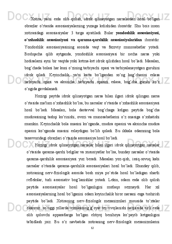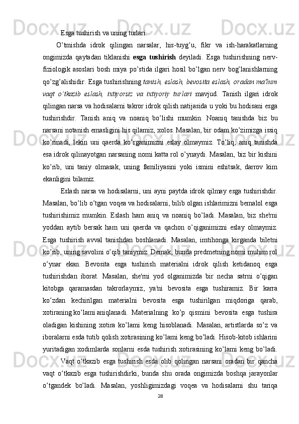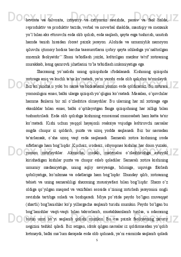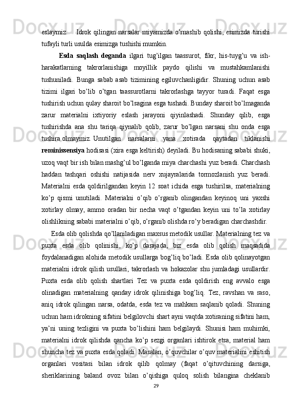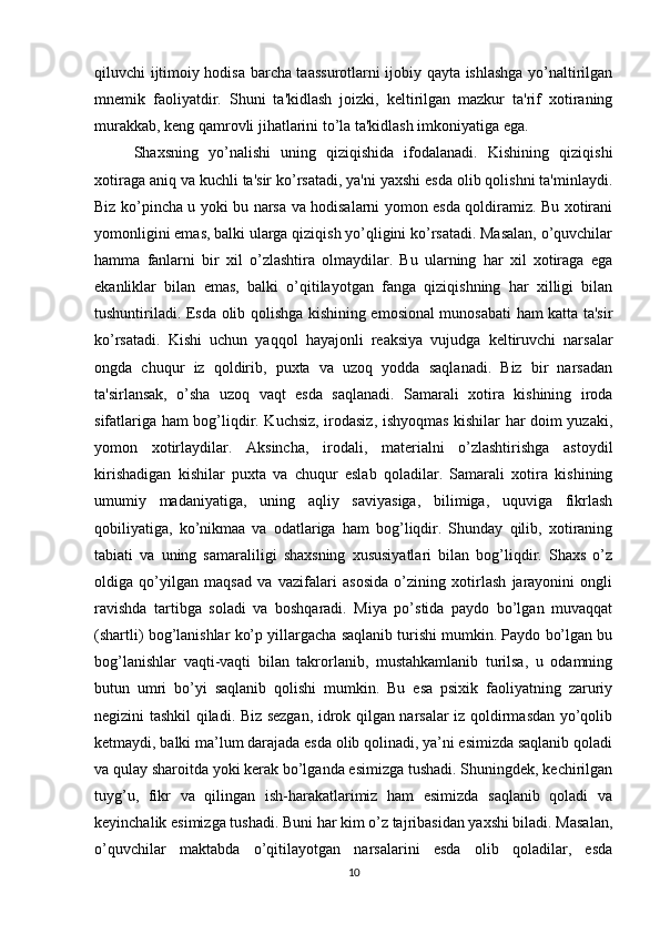 Bilish jarayonlarida xotira va tasavvurning ahamiyati