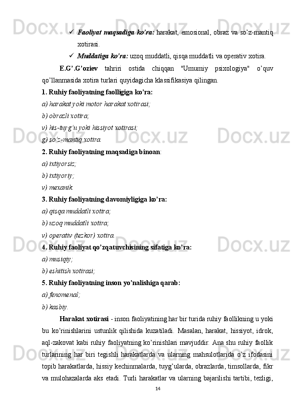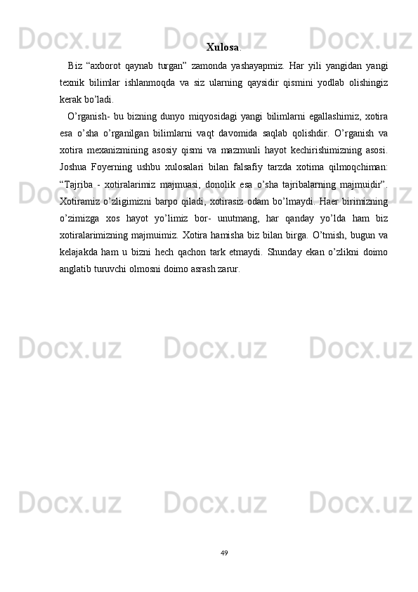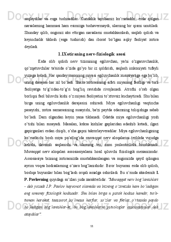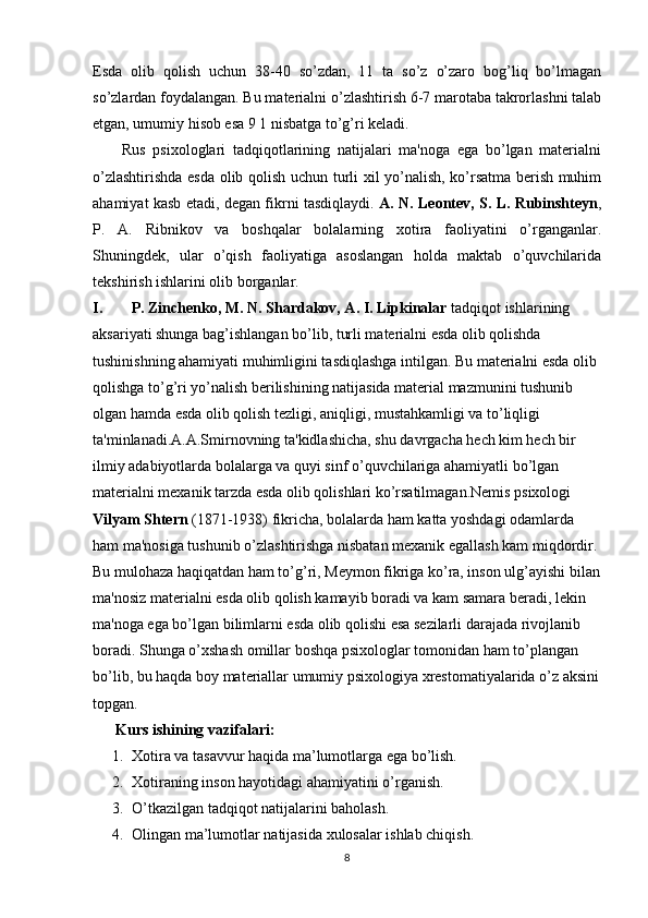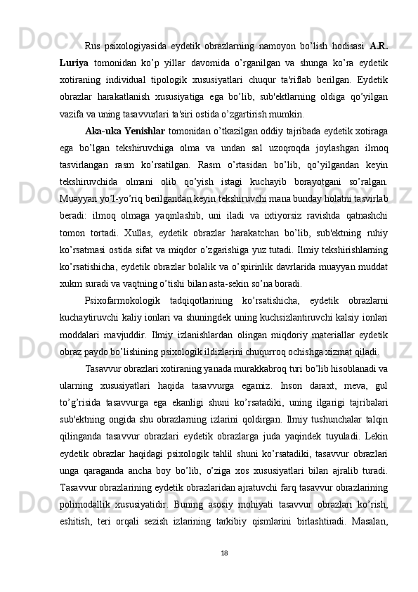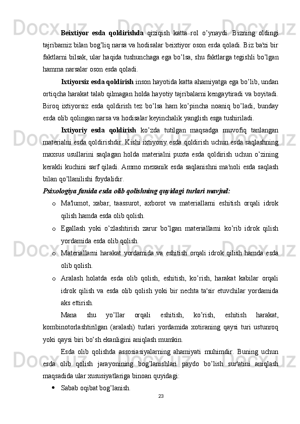 Bilish jarayonlarida xotira va tasavvurning ahamiyati