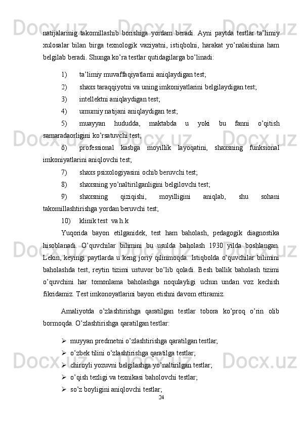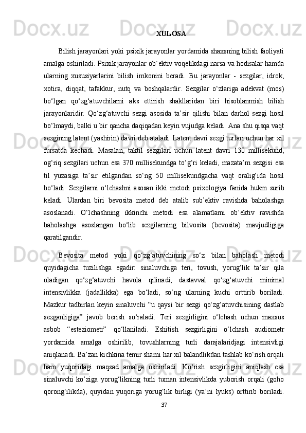 Bilish jarayonlarining psixodiagnostikasi va rivojlantirish usullari