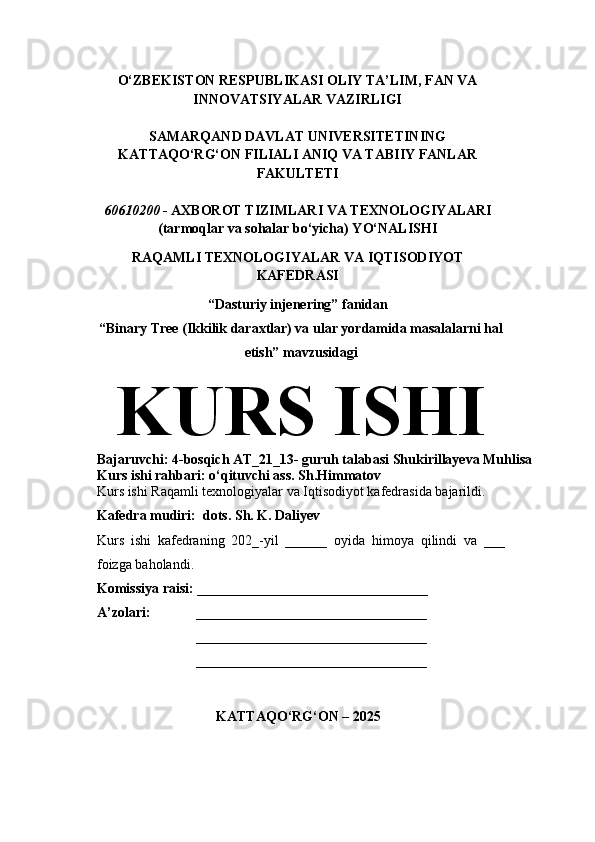 Binary Tree (Ikkilik daraxtlar) va ular yordamida masalalarni hal etish