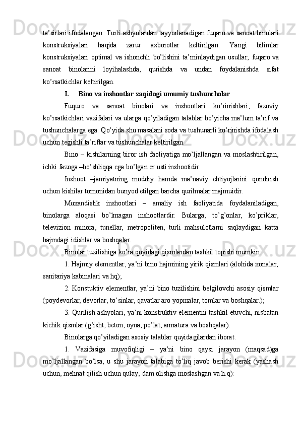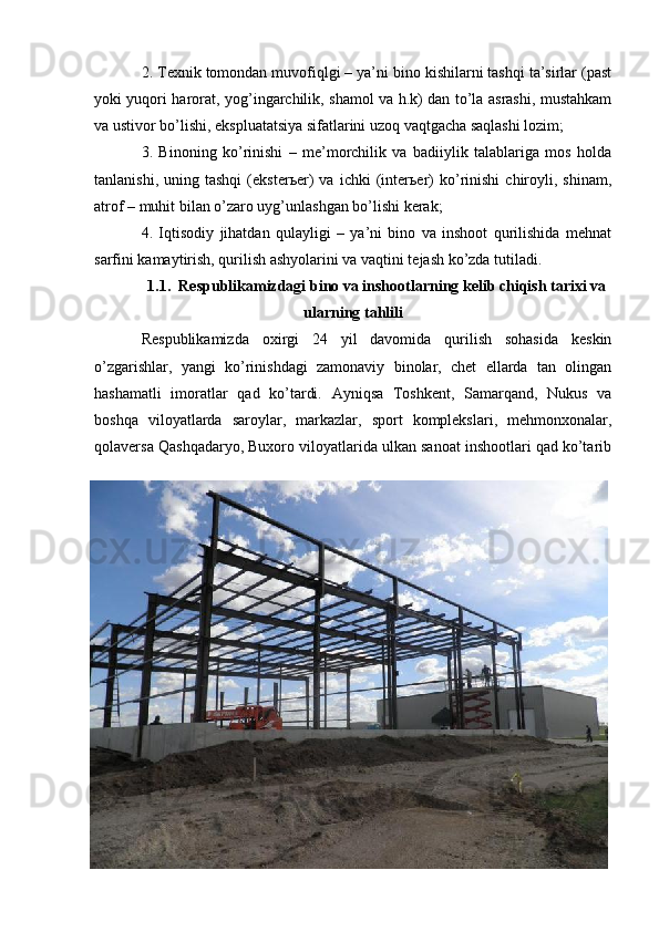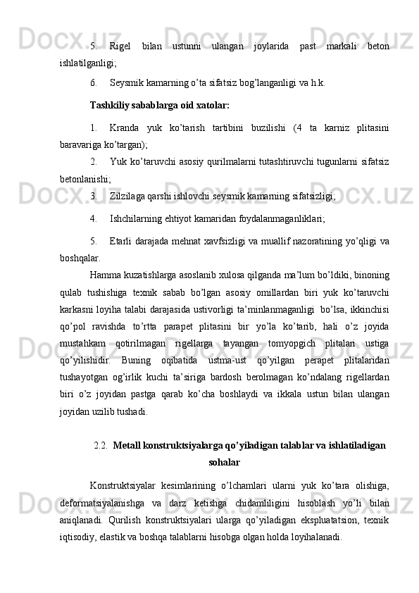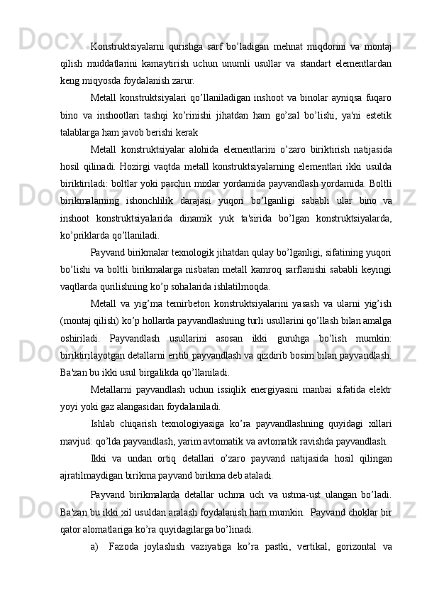 Bino inshoatlarida metall konstruksiyalari xavfsizligi talablari ta'minlanishi