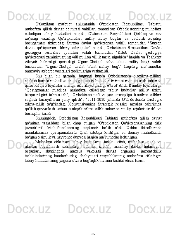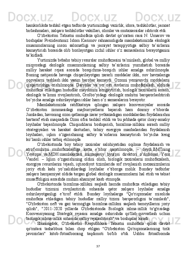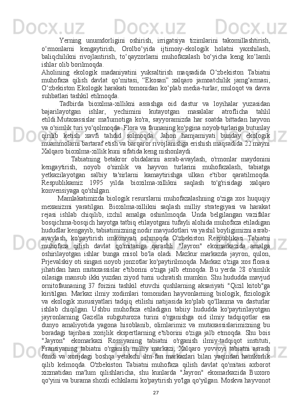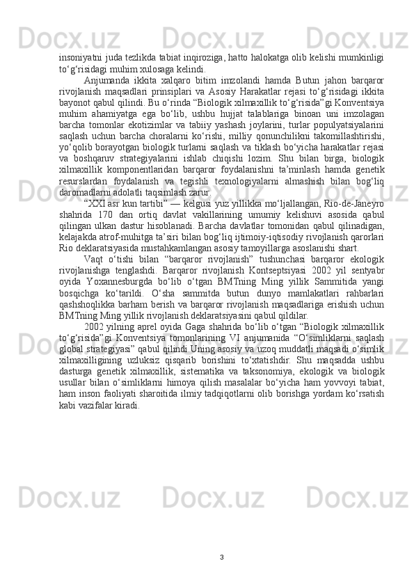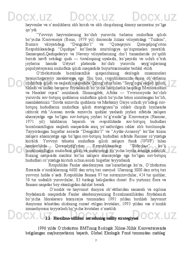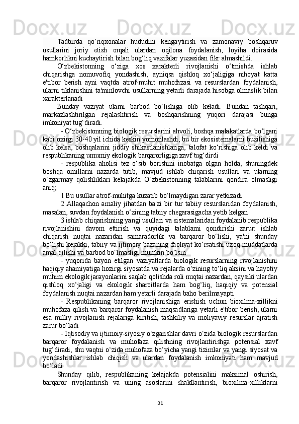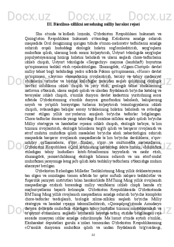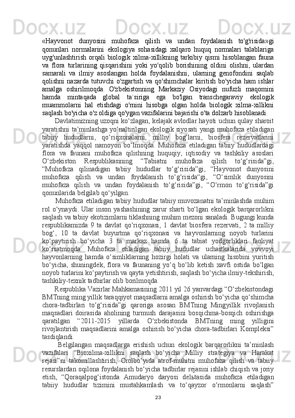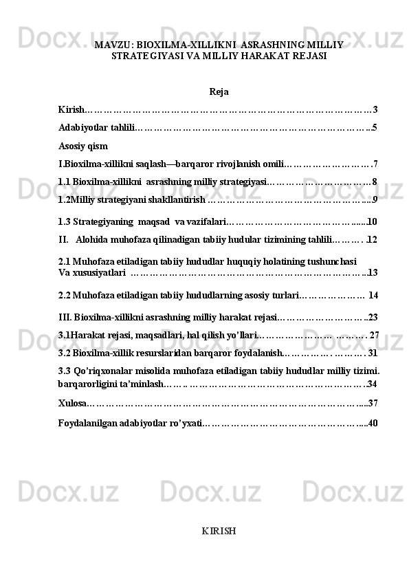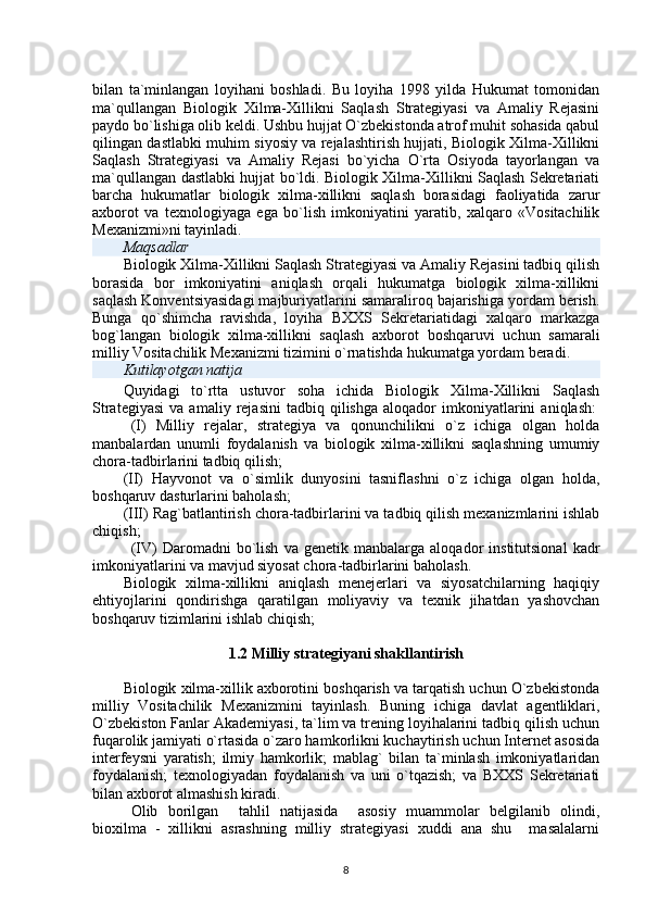 Bioxilma-xillikni asrashning milliy strategiyasi va milliy harakat rejasi