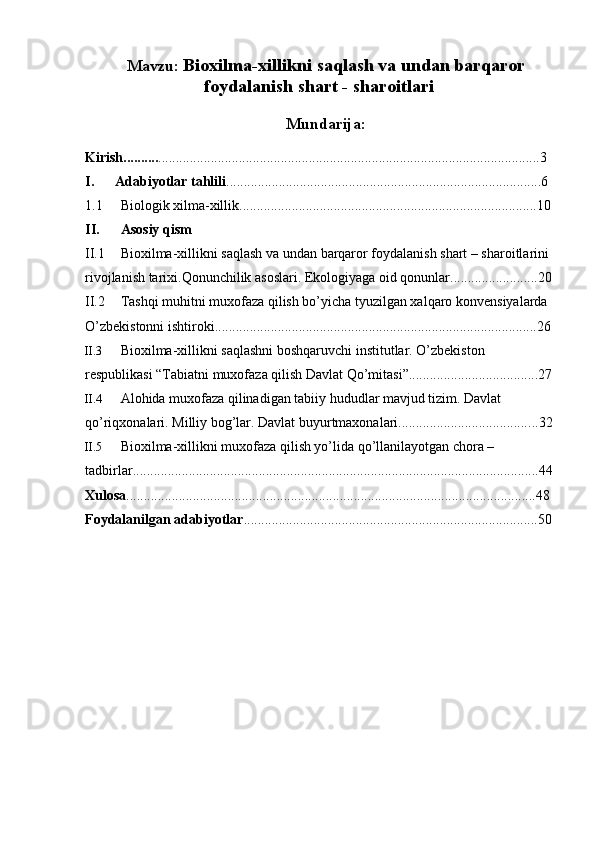 II.1 Bioxilma - xillikni   saqlash   va   undan   barqaror   foydalanish   shart  –  sharoitlarini