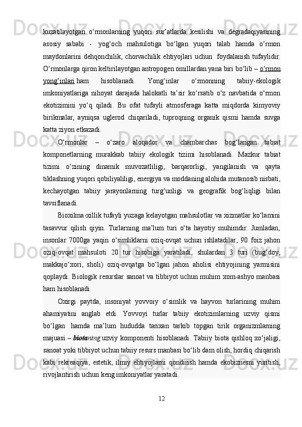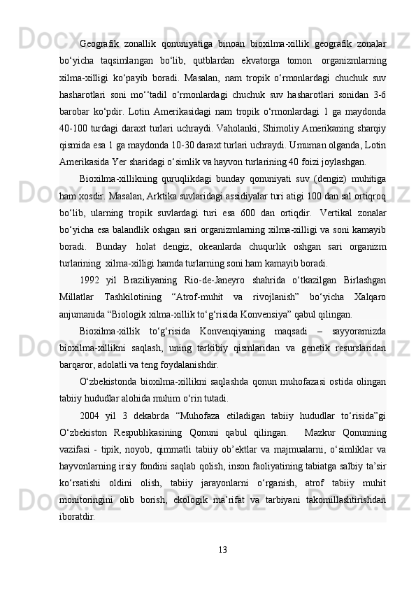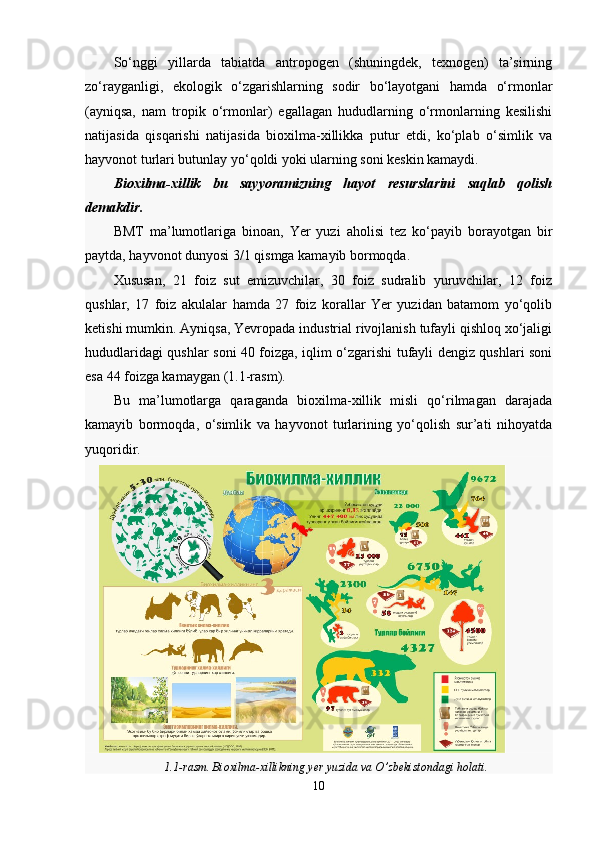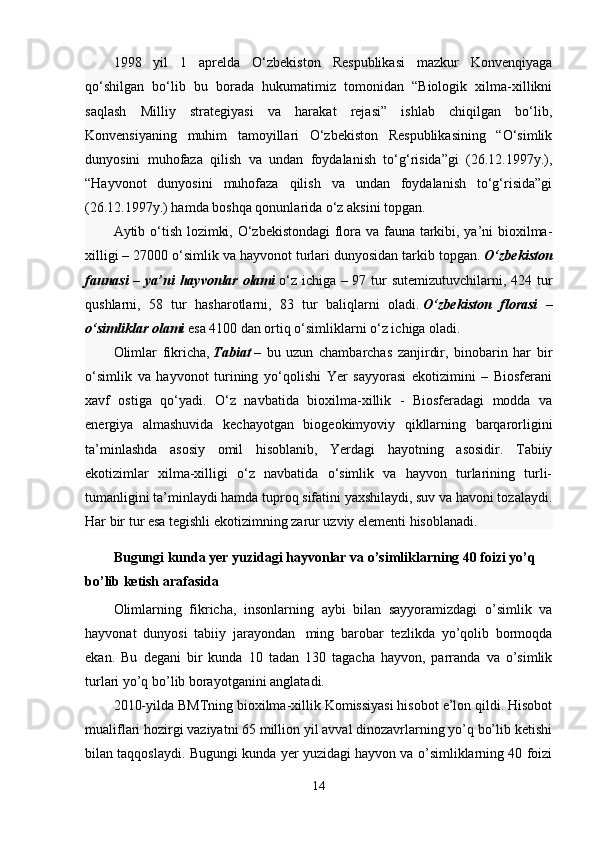 natijasida,   Bioxilma-xillikni   saqlash   –   umumbashariy   ekologik   muammolardan