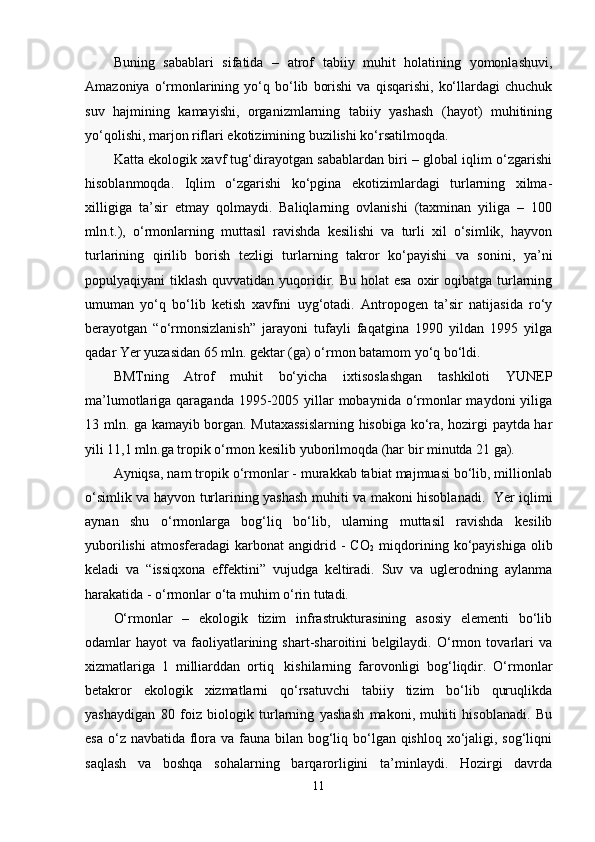 XXI   asrga  kelib  Yer   sharida  yuzaga   kelgan  holat   –  Yerdagi   biologik  xilma-