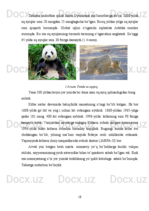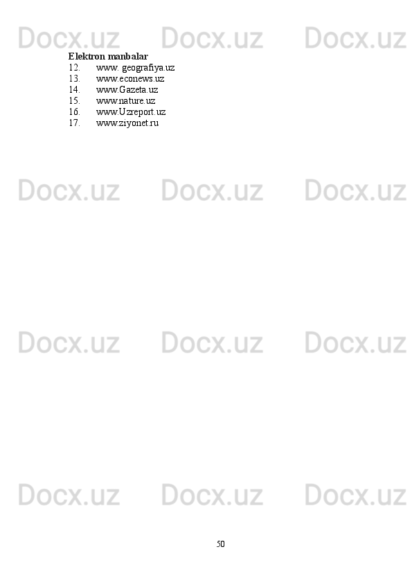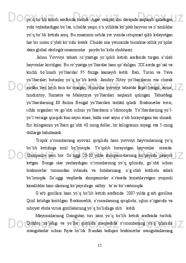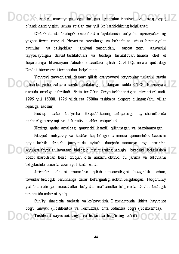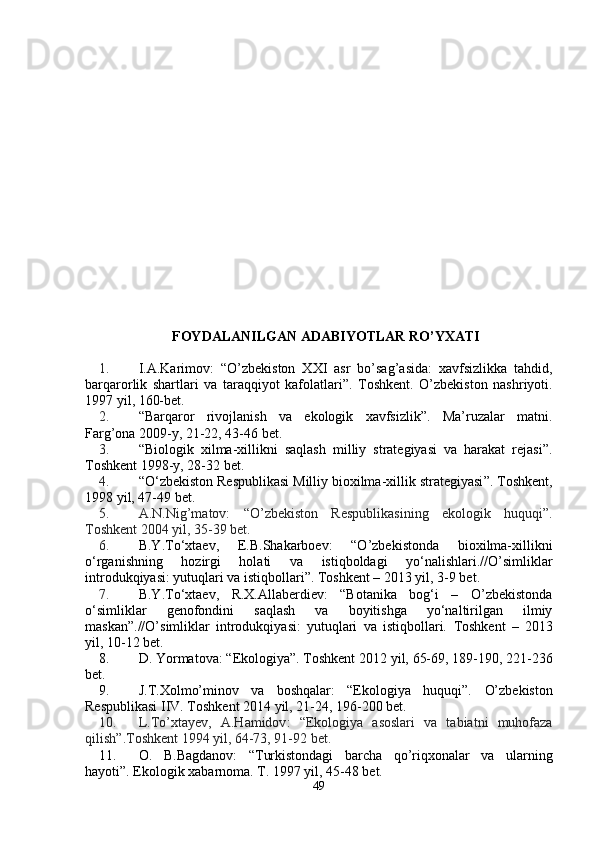 Foydalanilgan adabiyotlar ....................................................................................50 8) Yo’qolish   arafasida   turgan   yovvoyi   flora   va   faunalarning