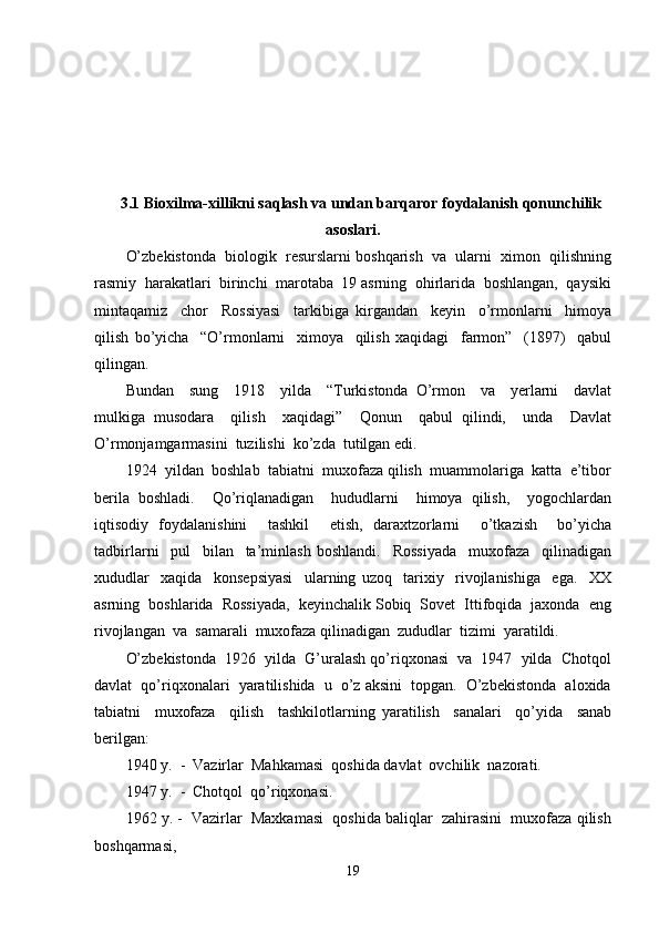 rivojlanish tarixi.Qonunchilik asoslari. Ekologiyaga oid qonunlar......................... 20