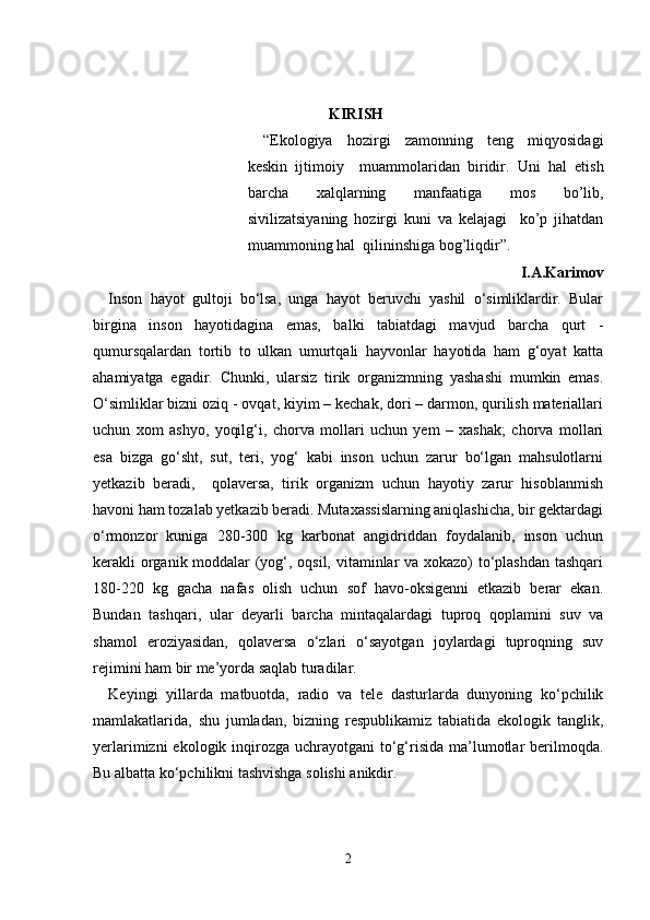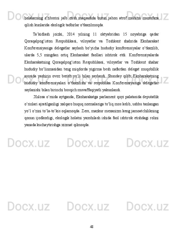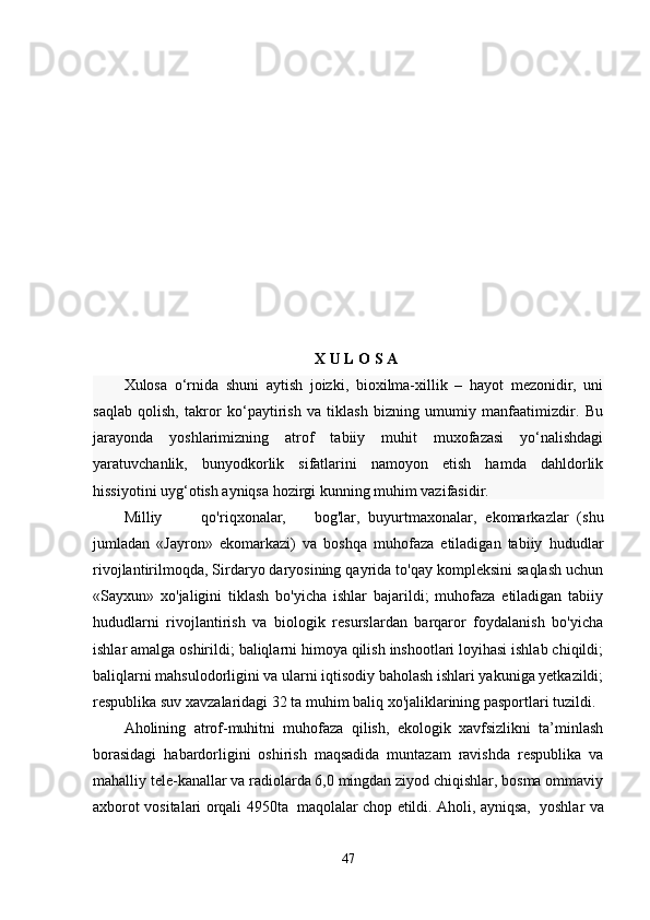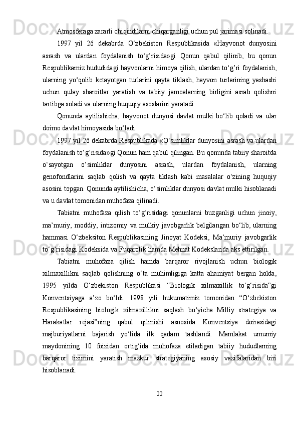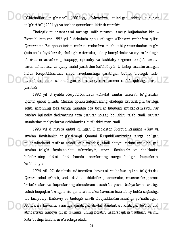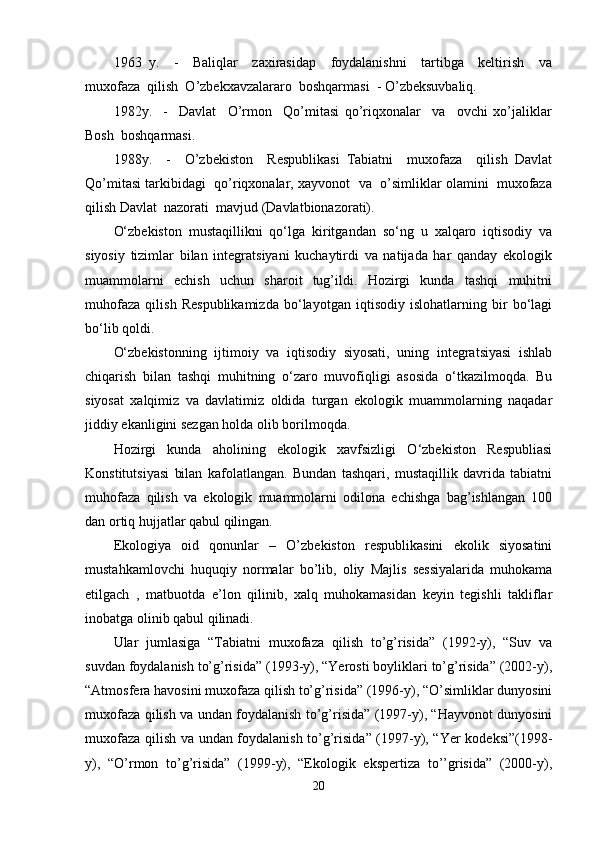 Bulardan   tashqari   O‘zbekiston   Respublikasi   tashqi   muhitni   muhofaza   qilish