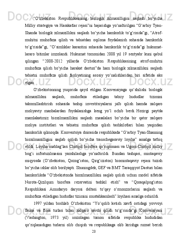 rivojlanmoqda. Birinchilardan bo'lib O'zbekiston Respublikasi "Tabiatni muhofaza